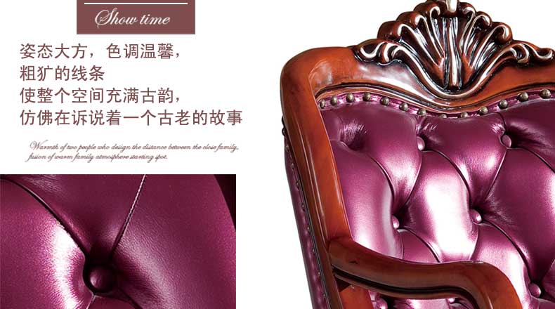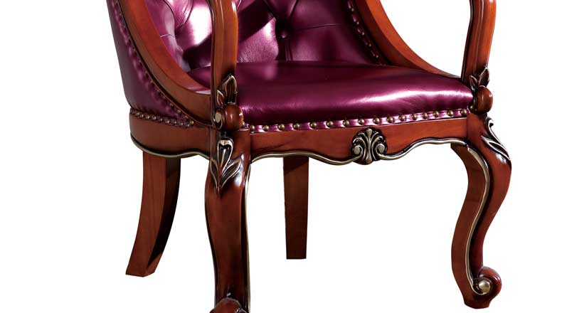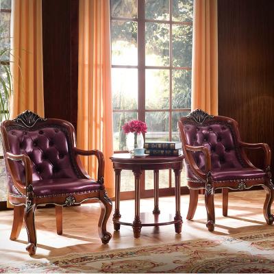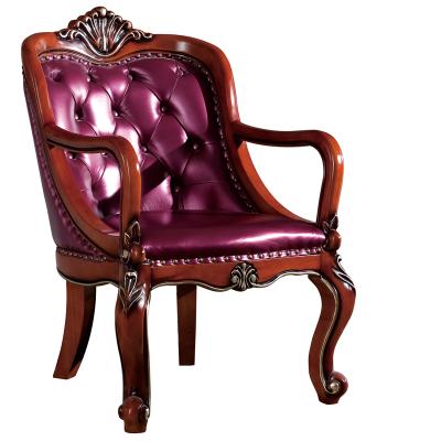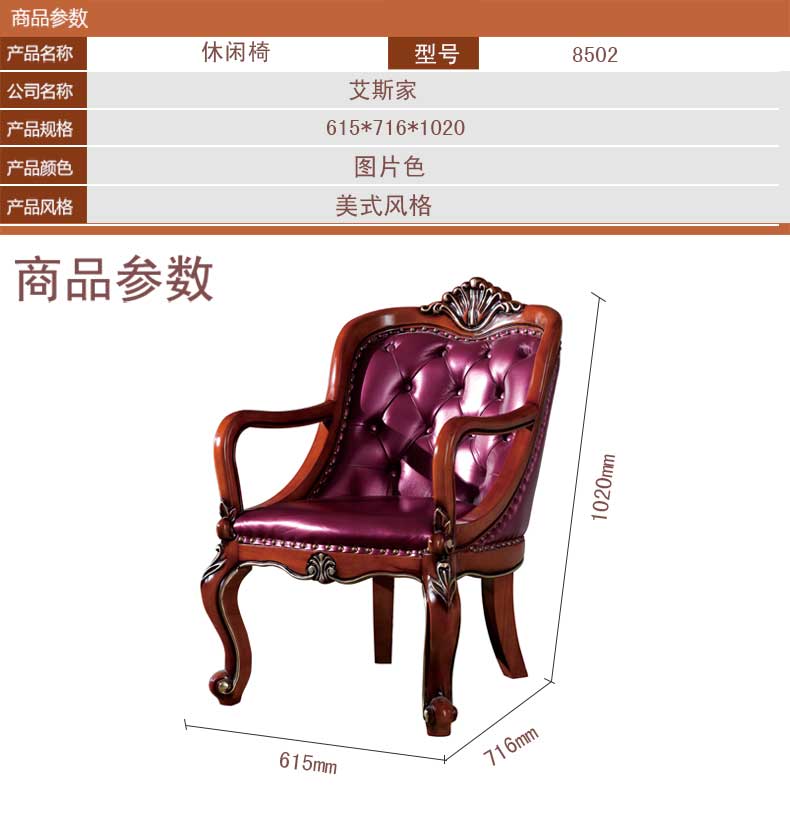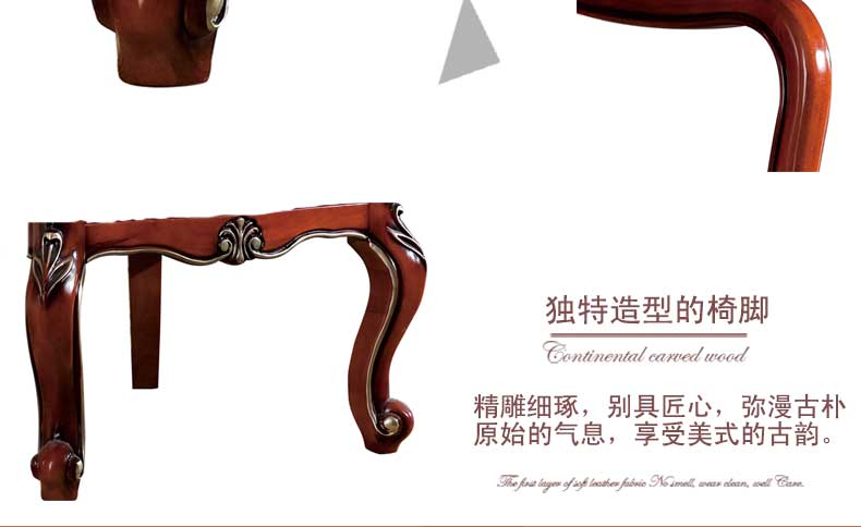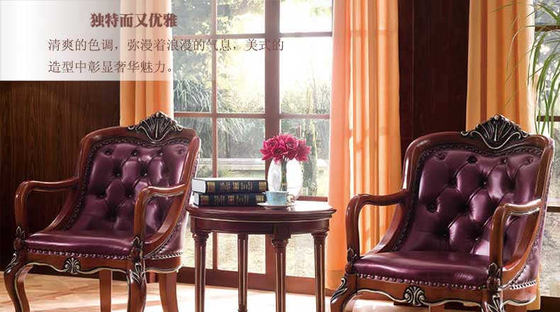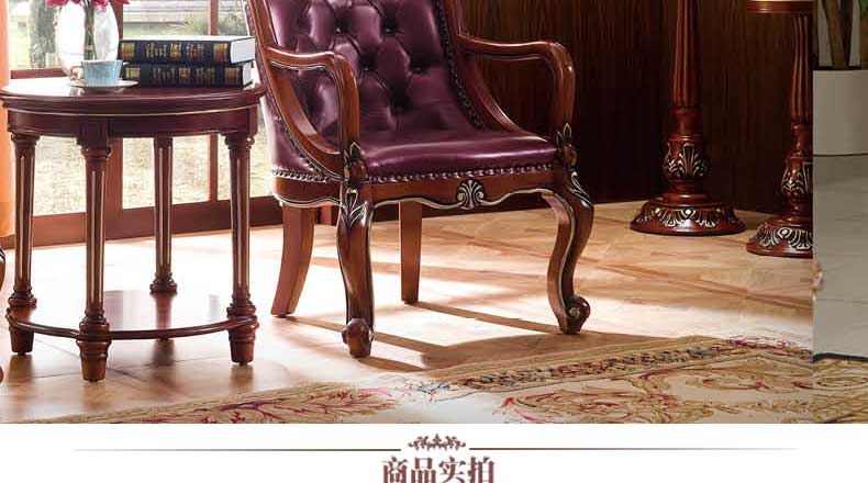艾斯家玫瑰金复古怀旧美式乡村实木法式皮艺软包单人休闲椅咖啡椅书椅餐椅8502