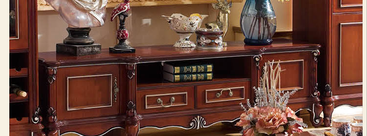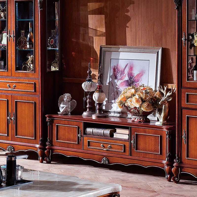 艾斯家玫瑰金电视柜 美式乡村电视柜组合 简约实木地柜矮柜客厅家具8501