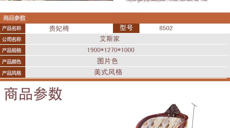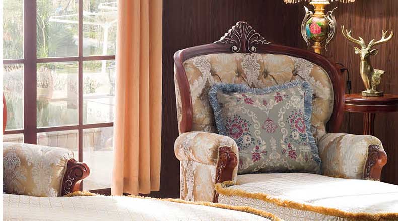 艾斯家玫瑰金贵妃椅实木沙发新古典贵妃躺椅懒人沙发美人榻卧室贵妃椅8502