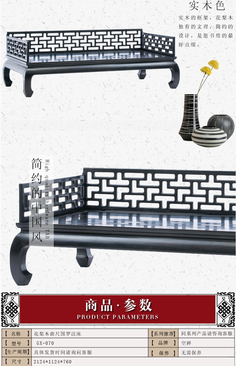 空禅中式仿古家具罗汉床实木罗汉榻花梨木中式床曲尺围罗汉床GX-070