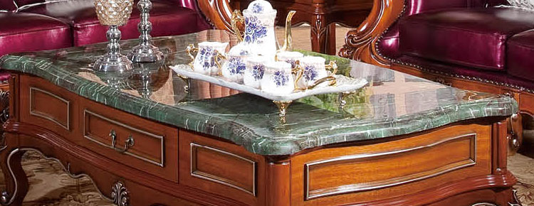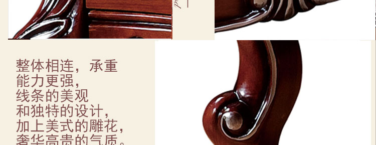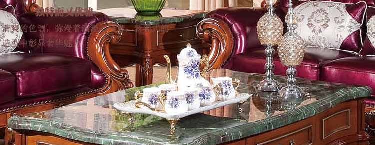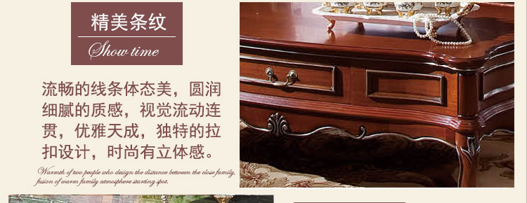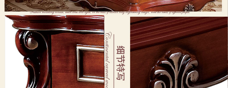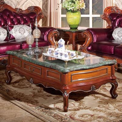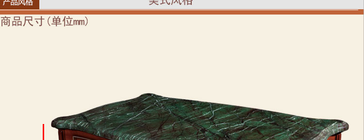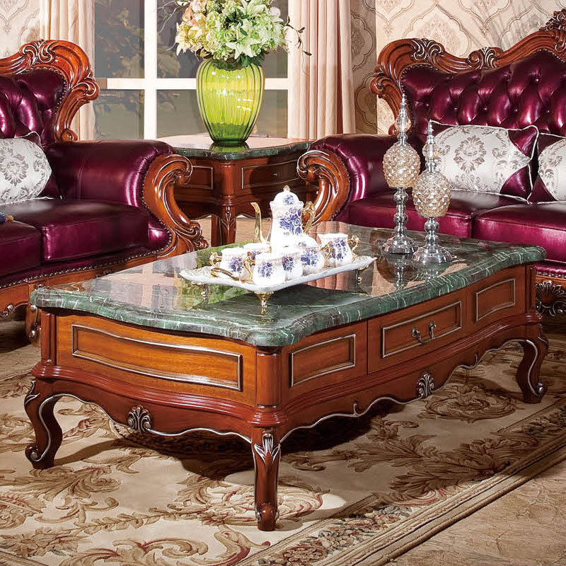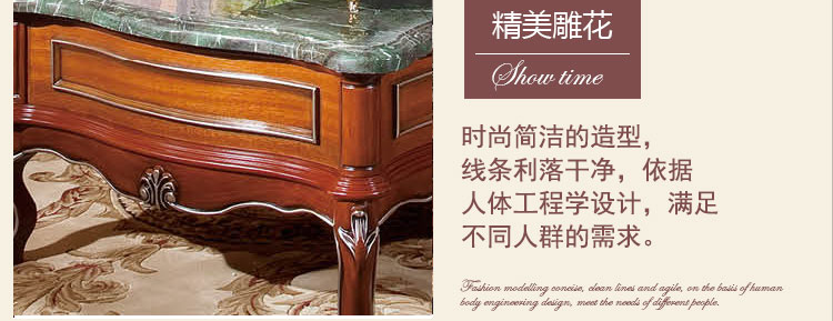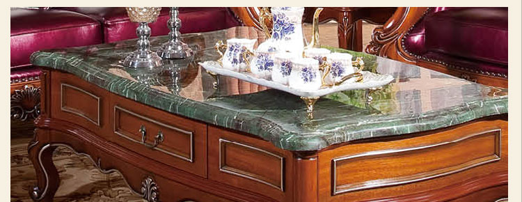 艾斯家玫瑰金美式乡村实木复古长茶地柜客厅大理石茶几木面茶几8503