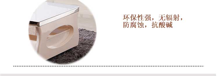 超白玻白色钢化玻璃面、201#高铜不锈钢框架、E1级环保材料
