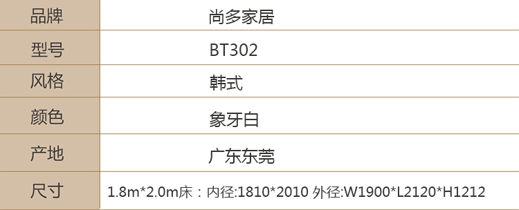 尚多家居 BT302象牙白 韩式田园 卧室1.8米公主床双人床婚床