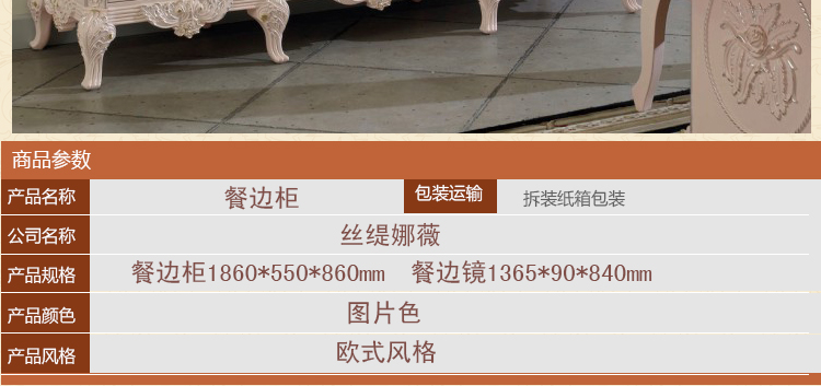 丝缇娜薇 餐边柜酒柜雕花餐边柜红酒柜储物柜碗柜欧式茶水柜SN601餐边柜SN601餐边镜