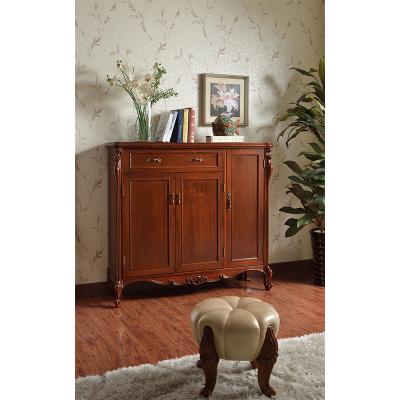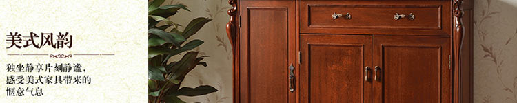 摩卡风情 美式实木鞋柜玄关柜 欧式三门收纳柜门厅柜实木橡木鞋柜