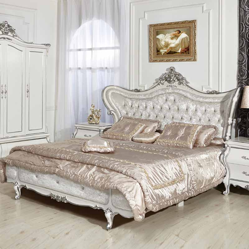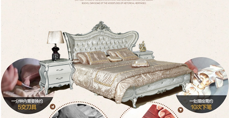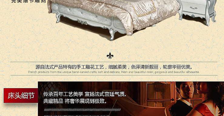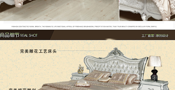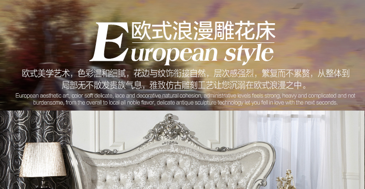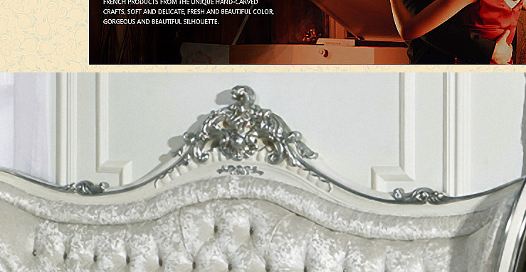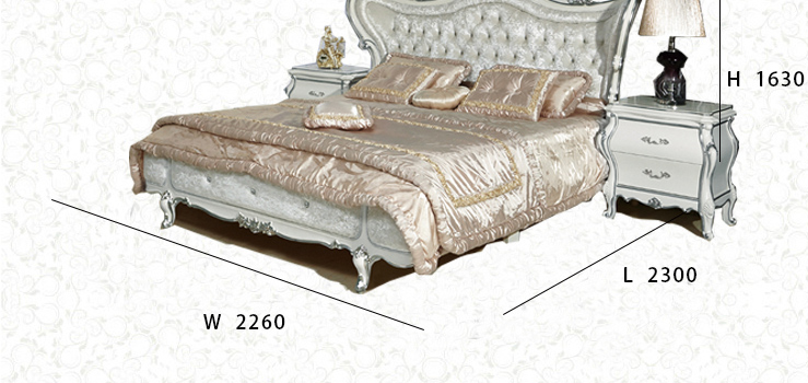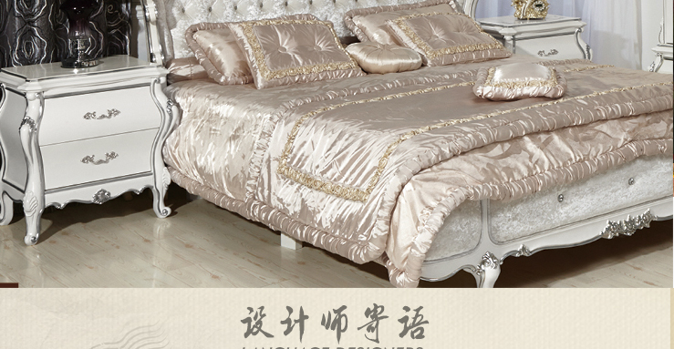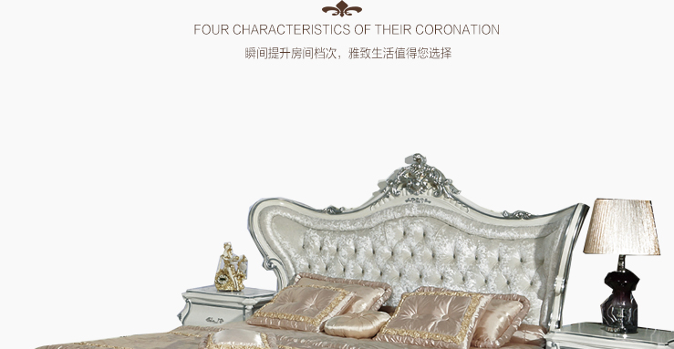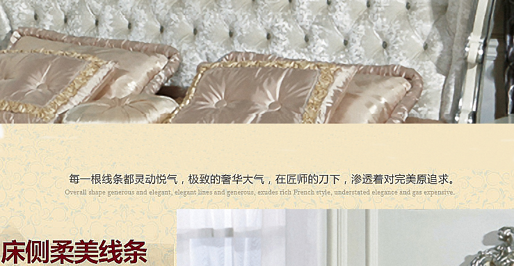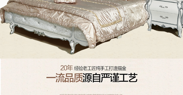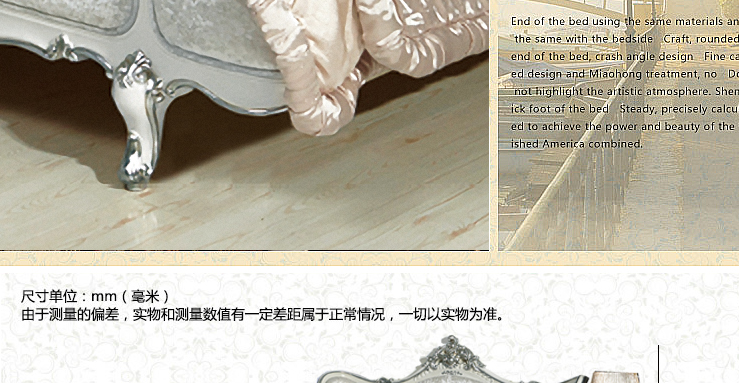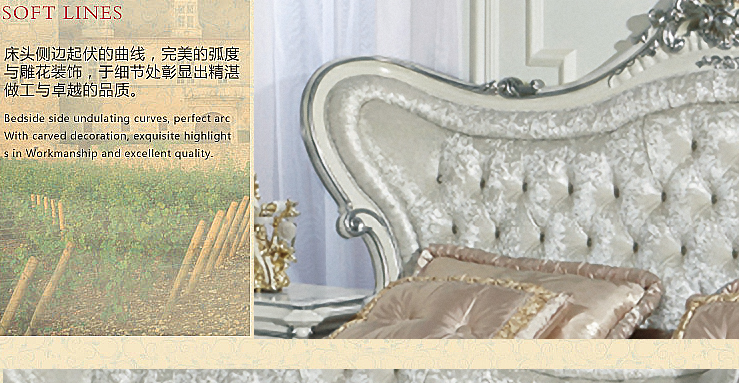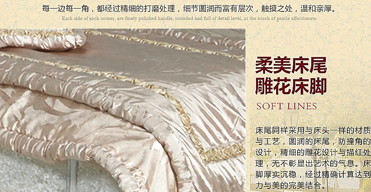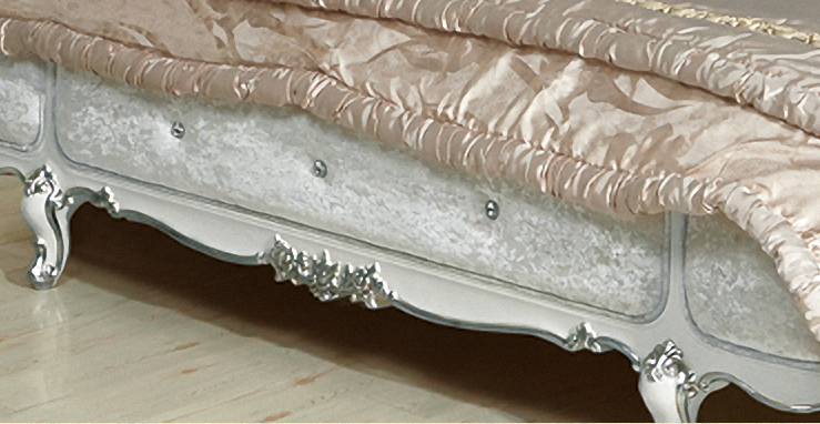 描银雕花设计是时尚不变的款式,放在卧室里让您的卧室增添了一些温馨的感觉,加上自带床尾软包,显得更加大气。