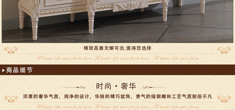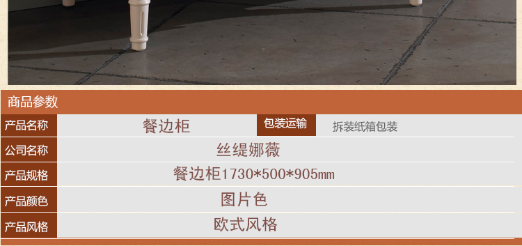 非常不错的餐边柜,没有任何味道,颜色款式都和描述一摸一样,朋友们都说好看!绝对是值得购买的!欧式装修风格非常搭!喜欢的朋友快快下手吧!