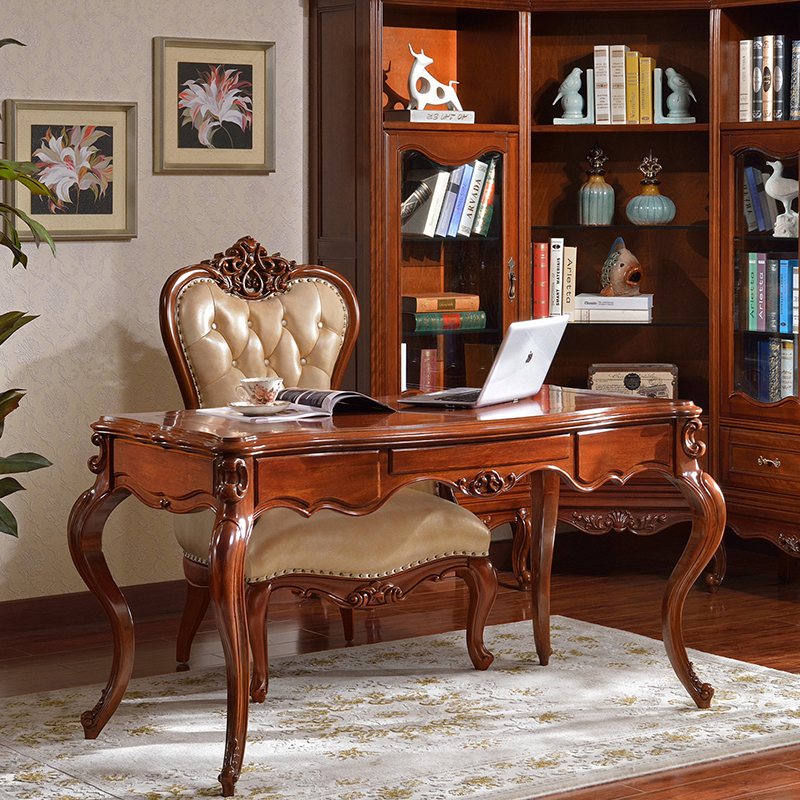 摩卡风情 美式实木书桌书椅写字台 书画桌实木办公桌 美式书桌书椅组合