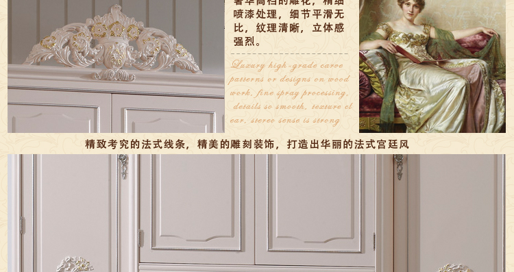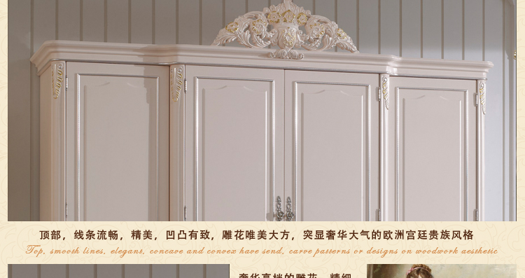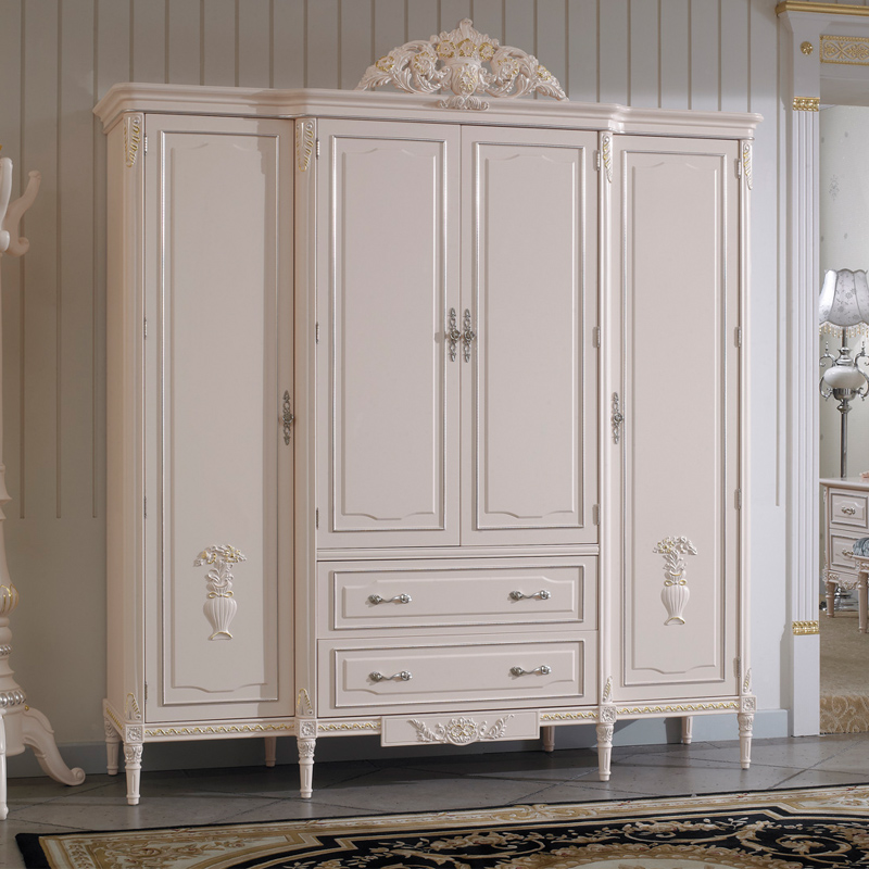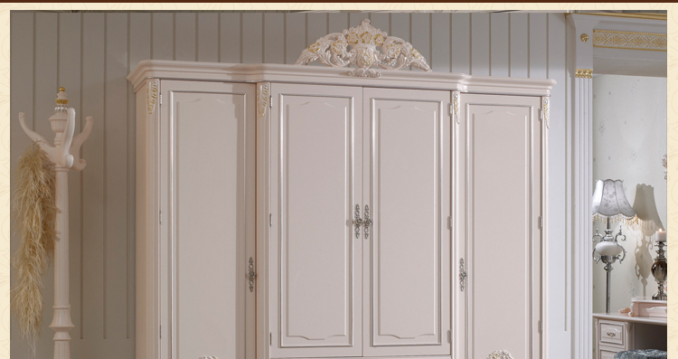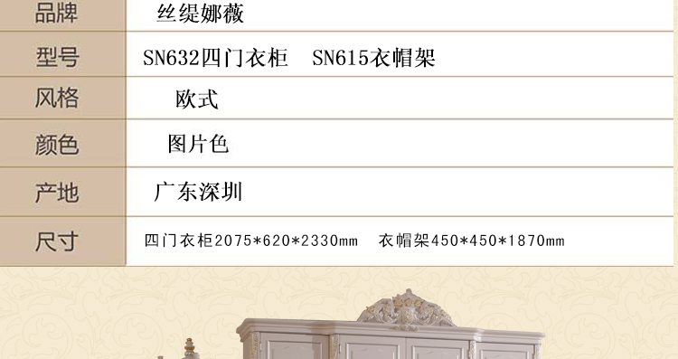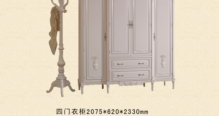 丝缇娜薇 衣柜欧式实木四门衣柜木质雕花储物柜整体大衣橱SN632四门衣柜SN615衣帽架