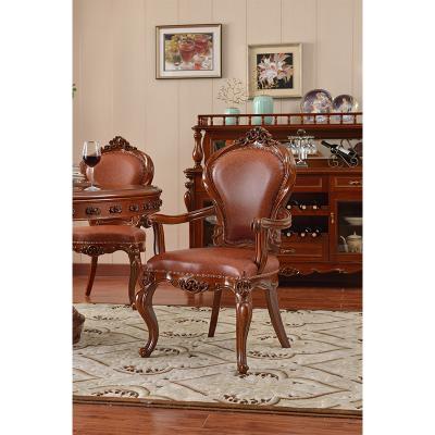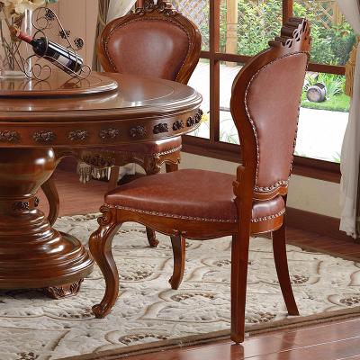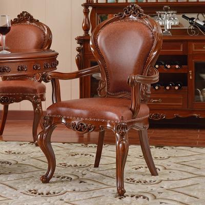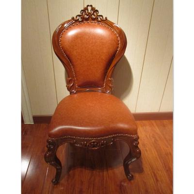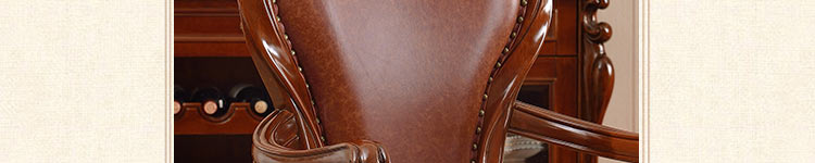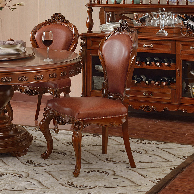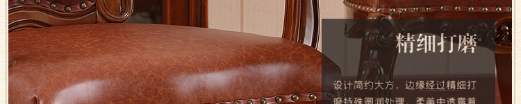 摩卡风情 美式实木餐椅 新古典洽谈椅雕花真皮麻将椅美式高端酒店椅子