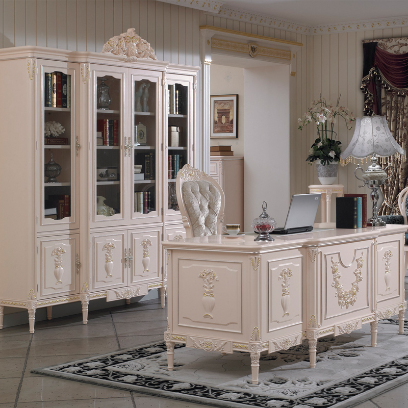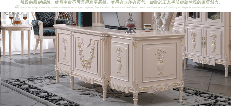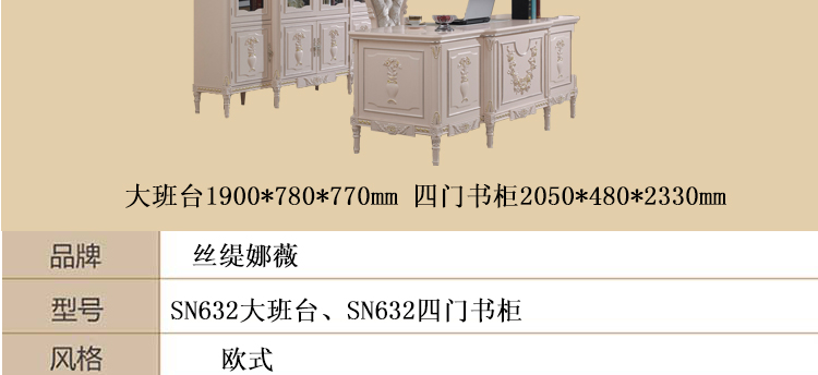 丝缇娜薇 欧式书桌办公桌实木雕花大班台书房电脑桌写字台SN632大班台SN632四门书柜