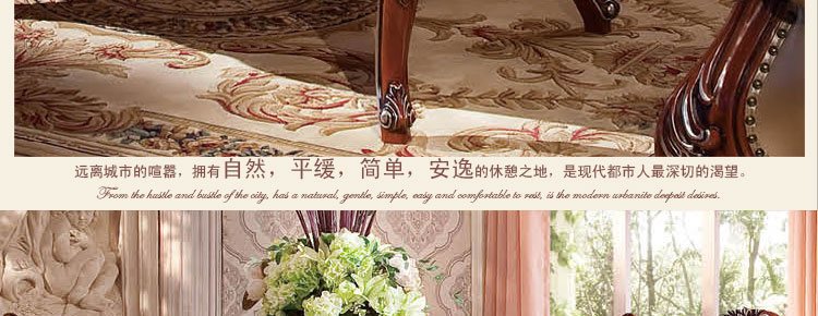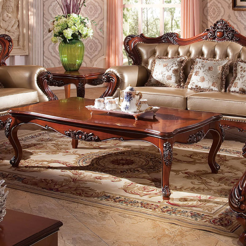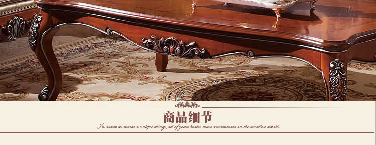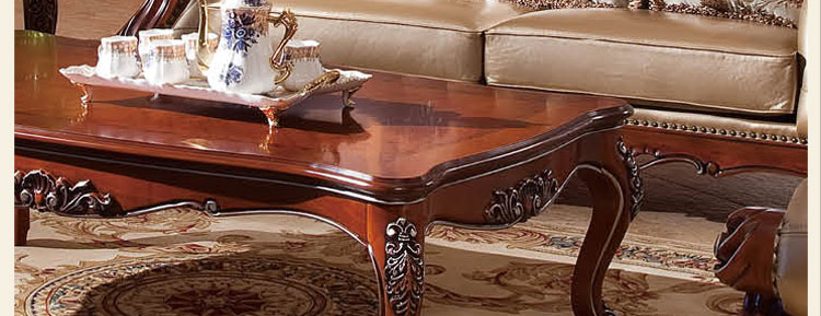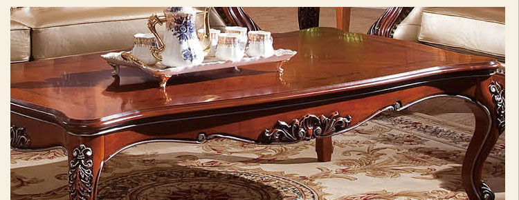 艾斯家玫瑰金美式乡村实木复古长茶地柜客厅大理石茶几木面茶几8505
