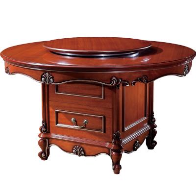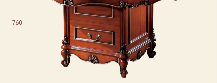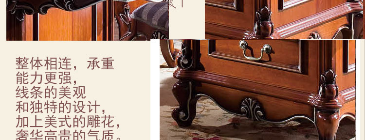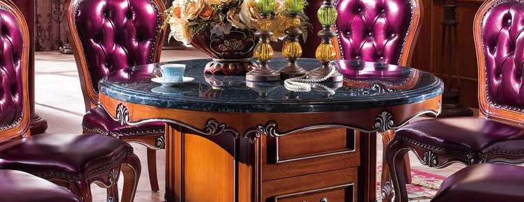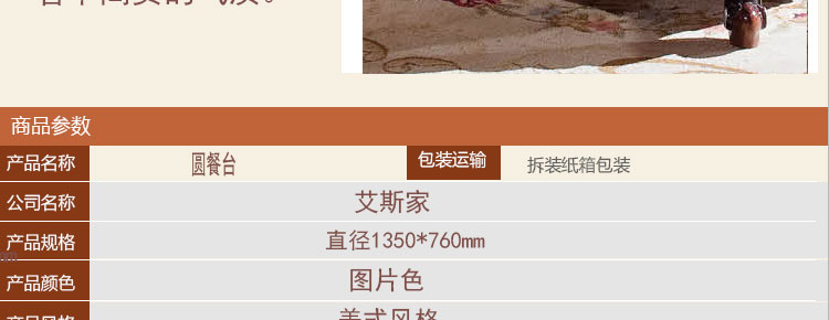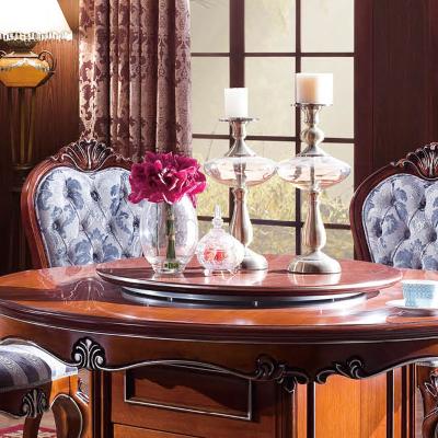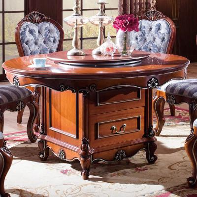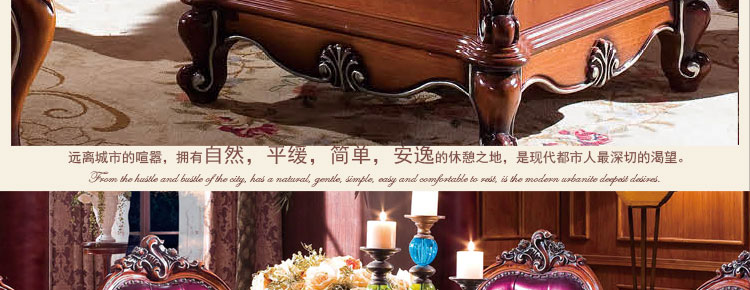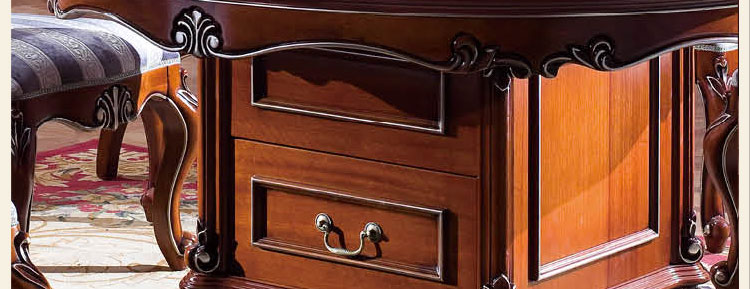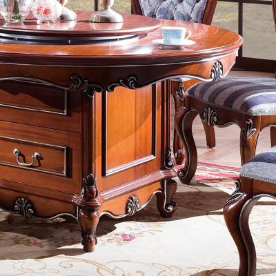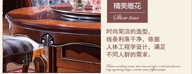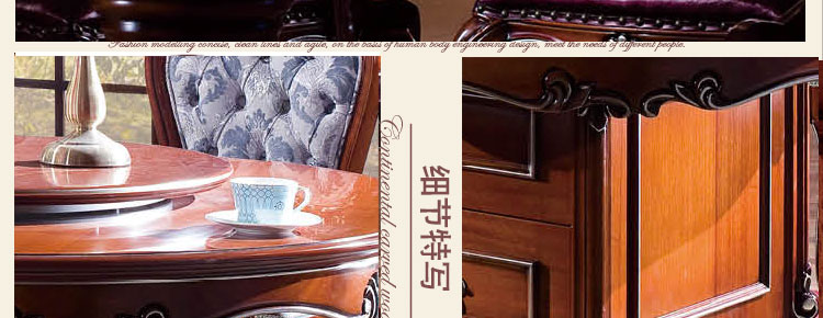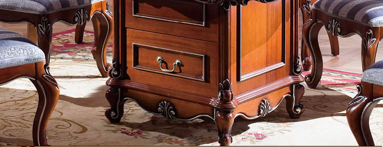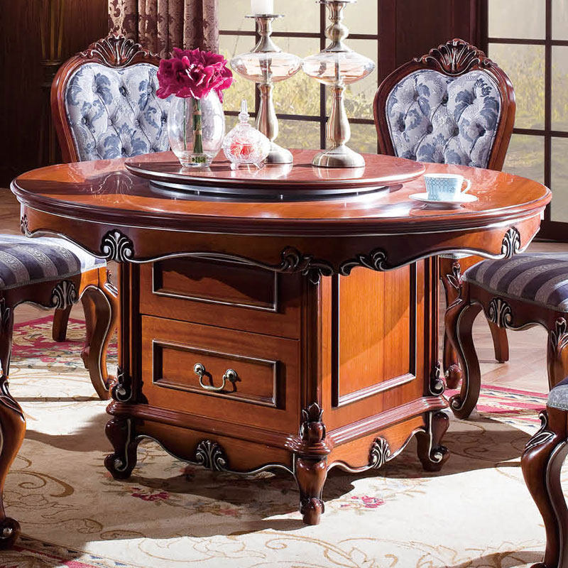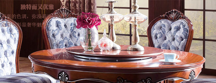 艾斯家美式玫瑰金乡村大理石圆餐桌 美式田园餐桌椅组合全实木雕花方桌饭桌8505