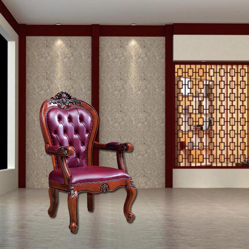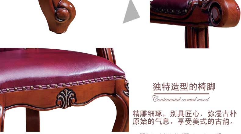 艾斯家玫瑰金美式电脑复古实木椅子 咖啡厅雕花酒店做旧仿古餐椅书椅8502