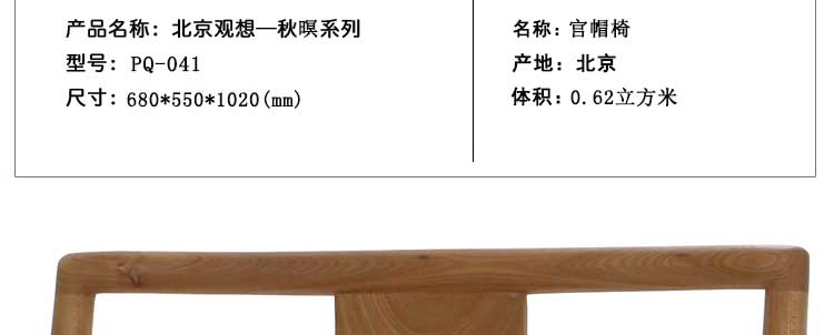 观想秋暝系列全实木罗锅枨南官帽椅 中式风格休闲罗锅枨南官帽椅PQ-041