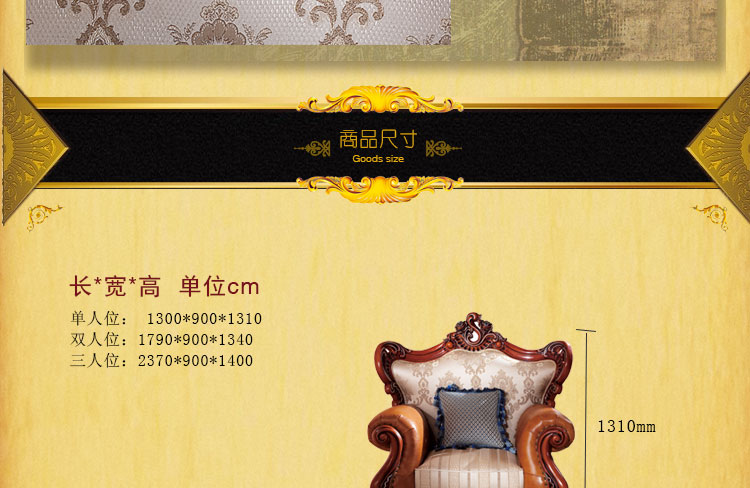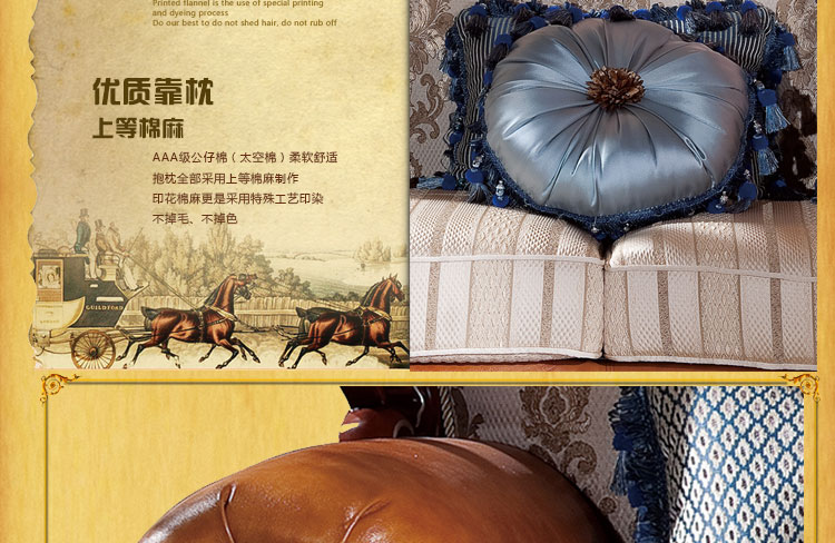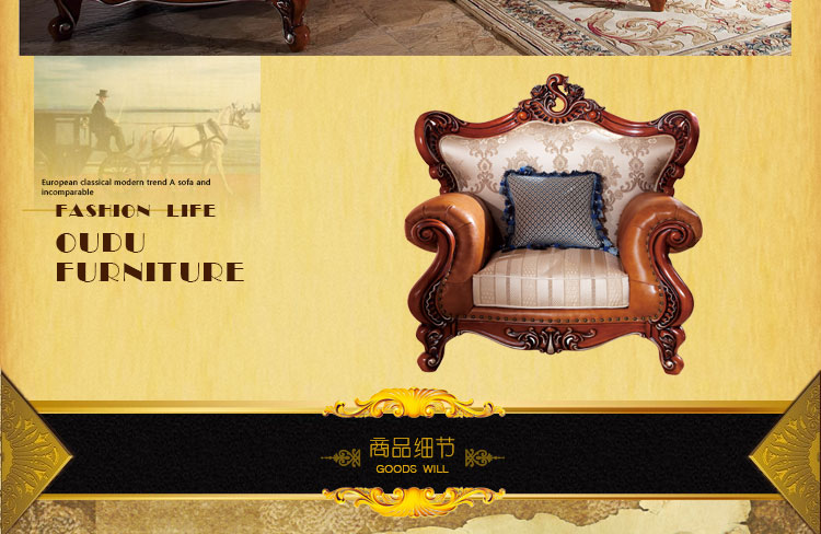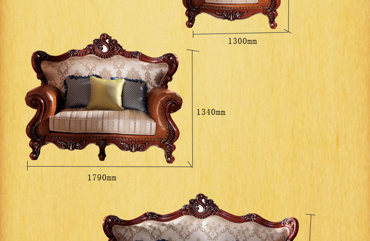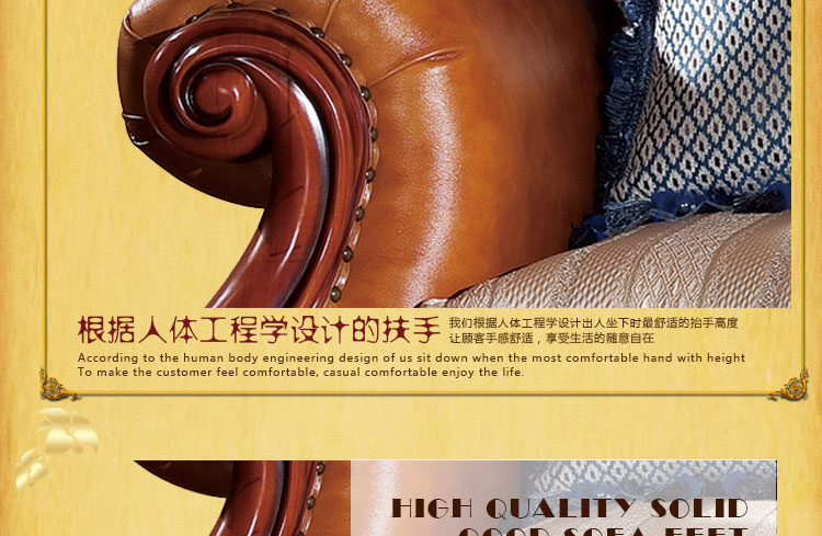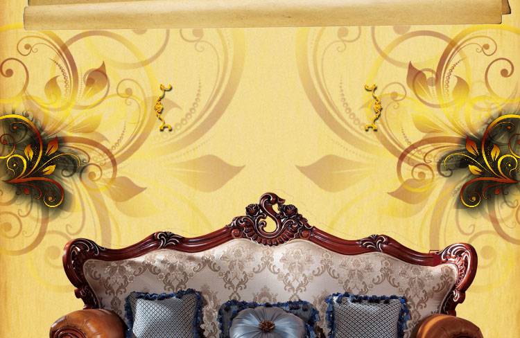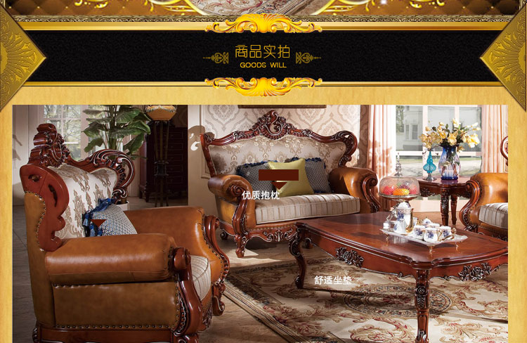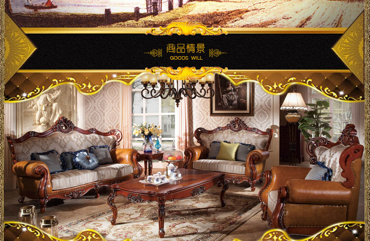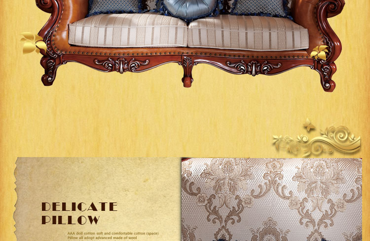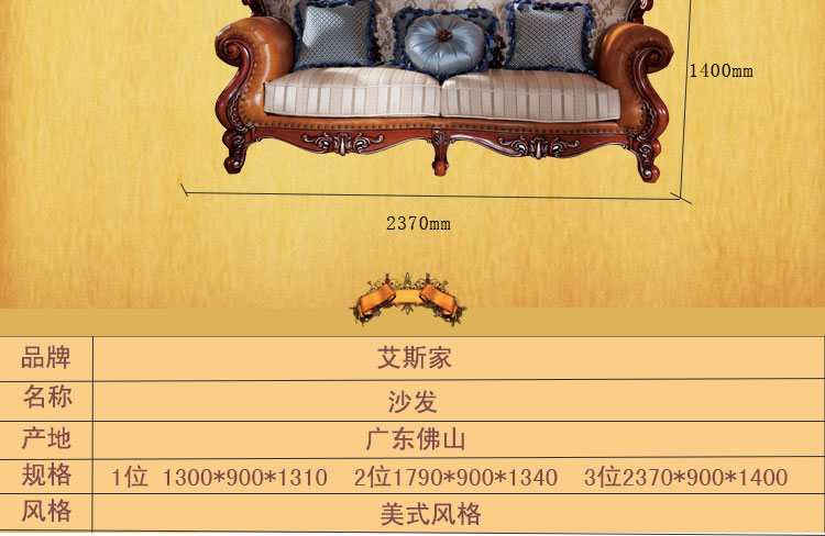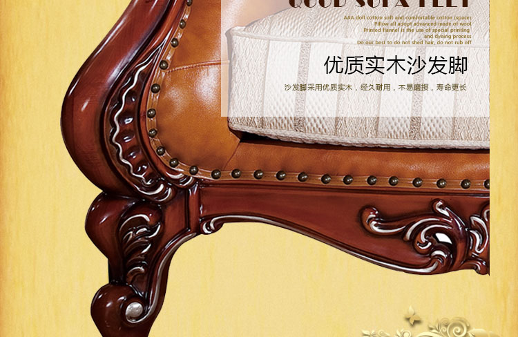 艾斯家美式玫瑰金实木雕花1+2+3真皮沙发组合 客厅美式家具 新美式皮艺沙发8507