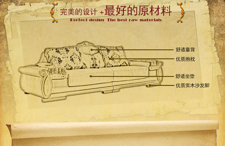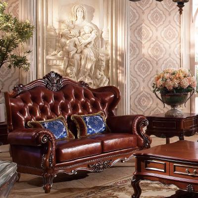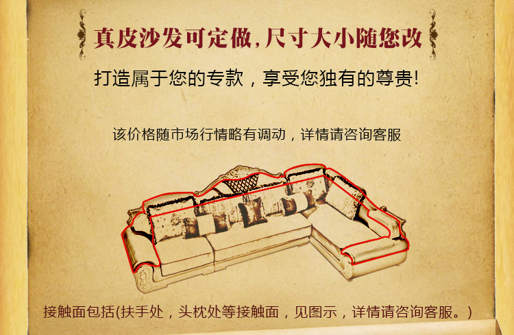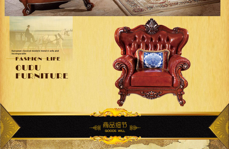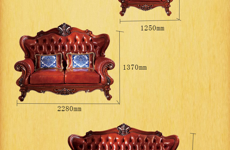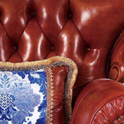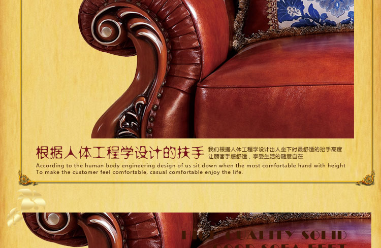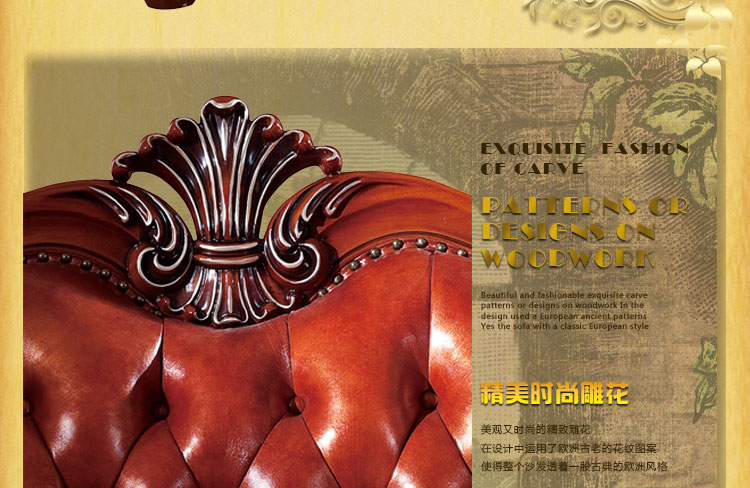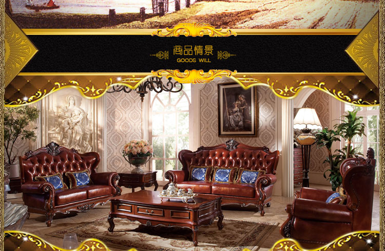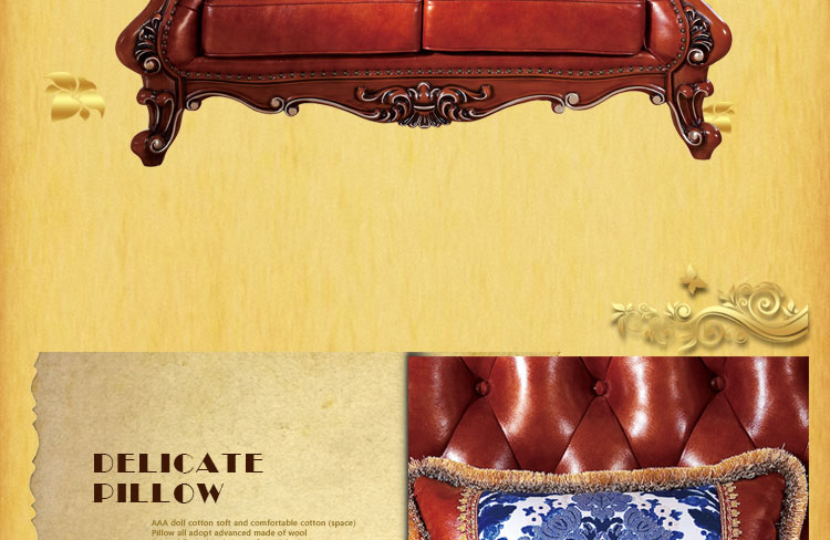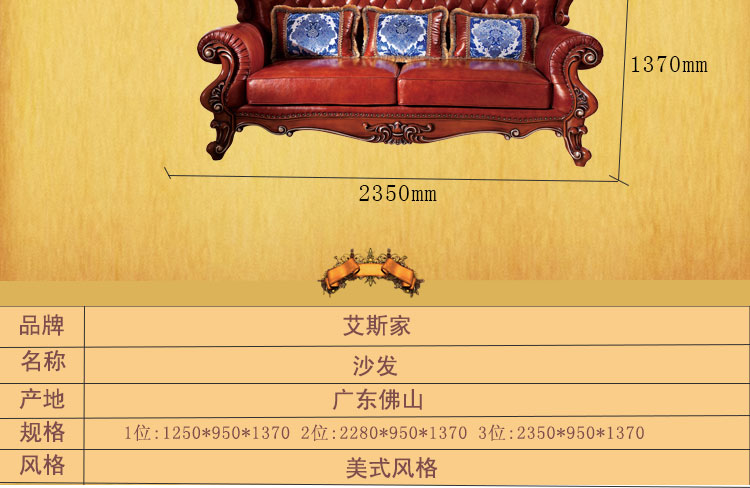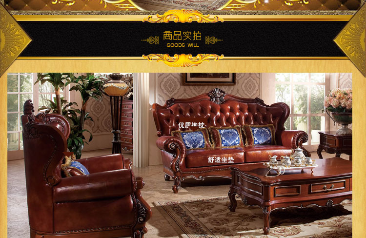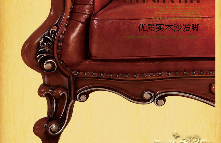 艾斯家美式玫瑰金实木雕花1+2+3真皮沙发组合 客厅美式家具 新美式皮艺沙发8509