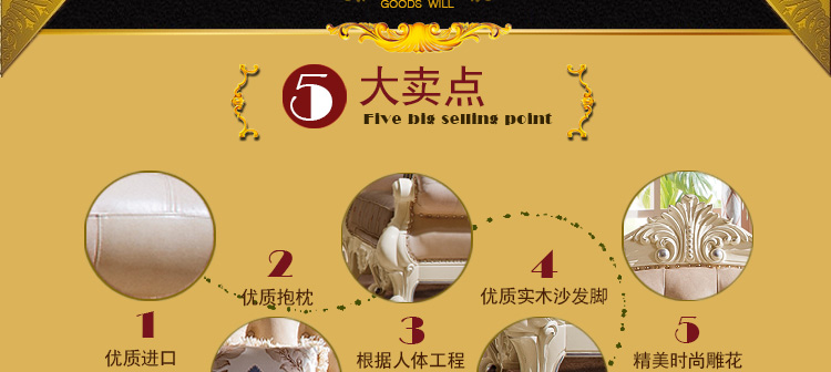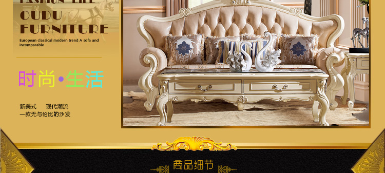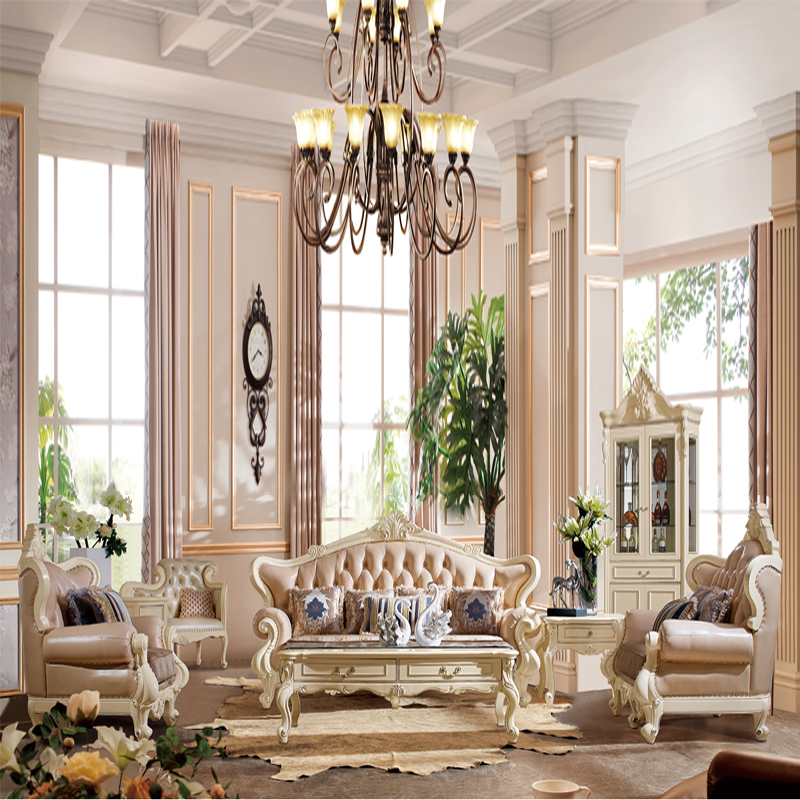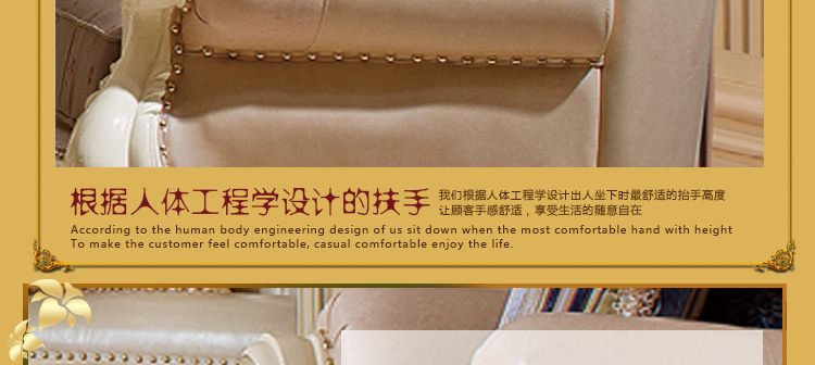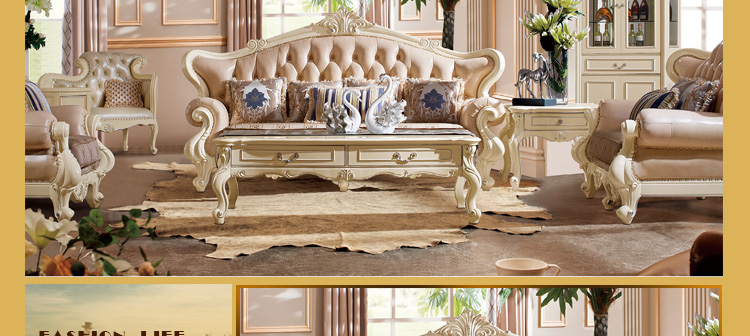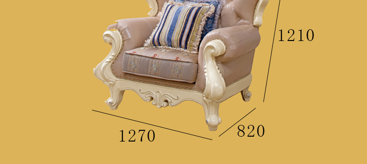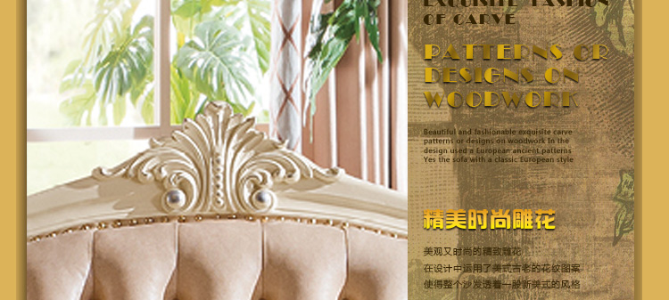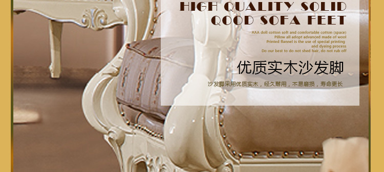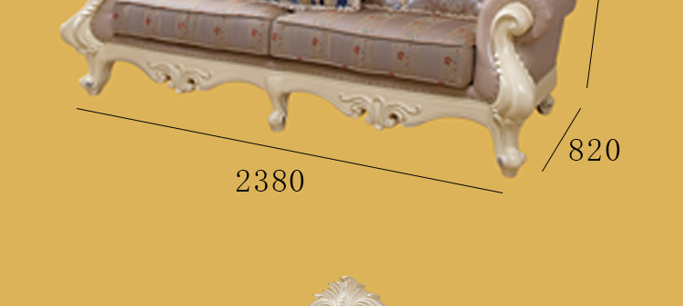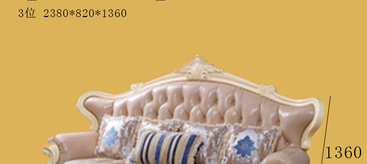艾斯家 实木雕花1+2+3真皮沙发组合 客厅美式家具 新美式皮艺沙发8505方几8501