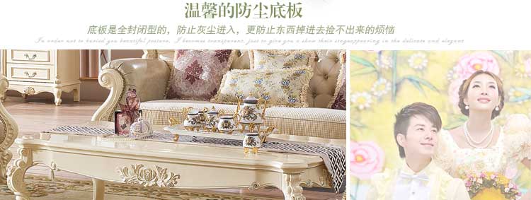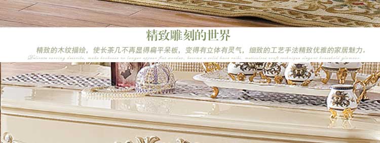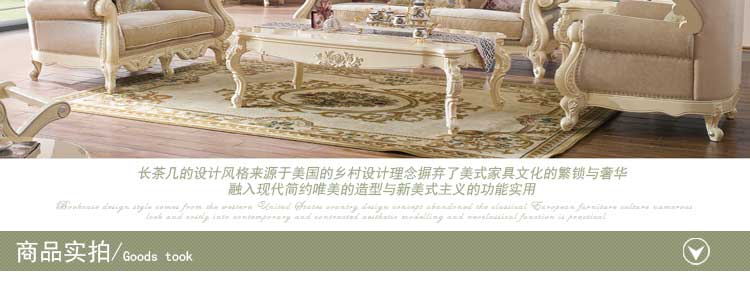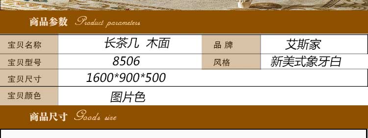 艾斯家 美式象牙白乡村实木长茶几组合客厅茶几 8506