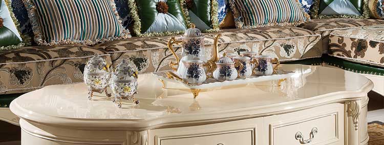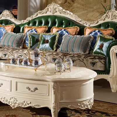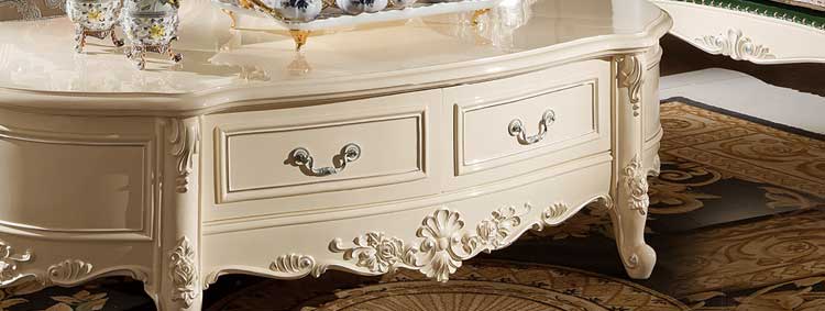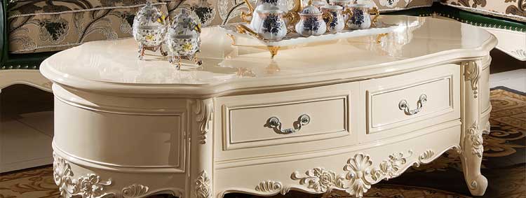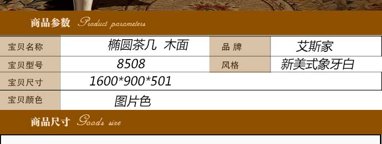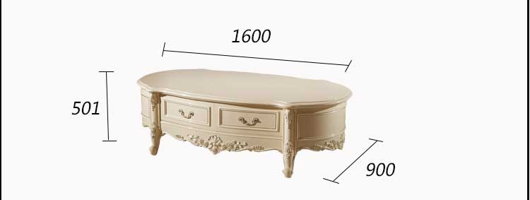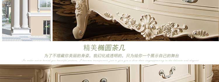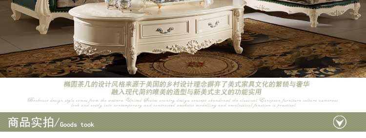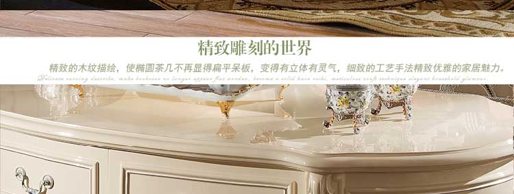 艾斯家 象牙白美式乡村实木椭圆茶几组合地柜客厅茶几 8508