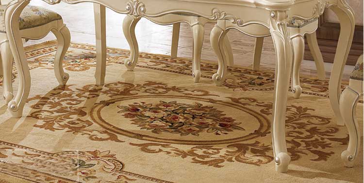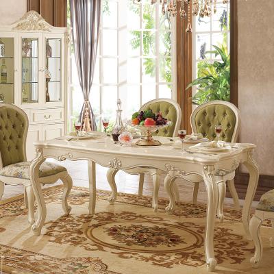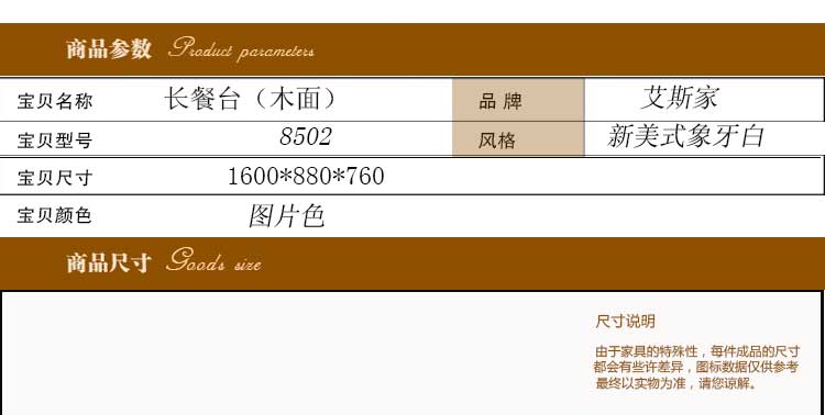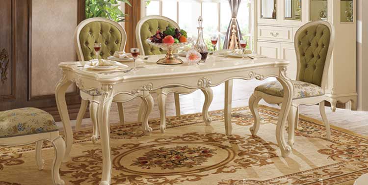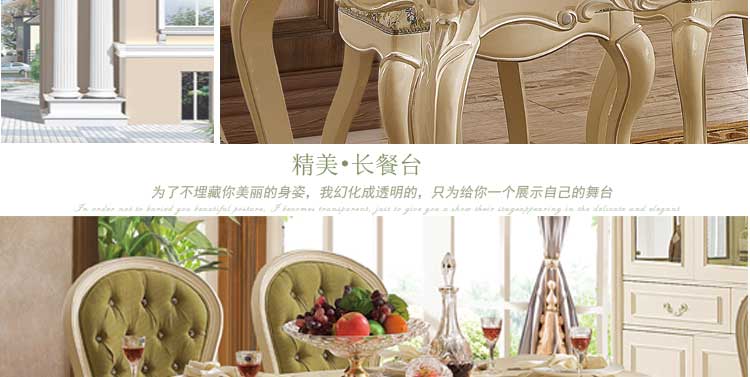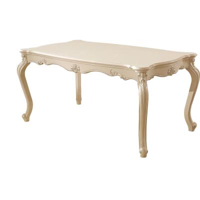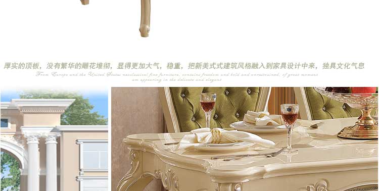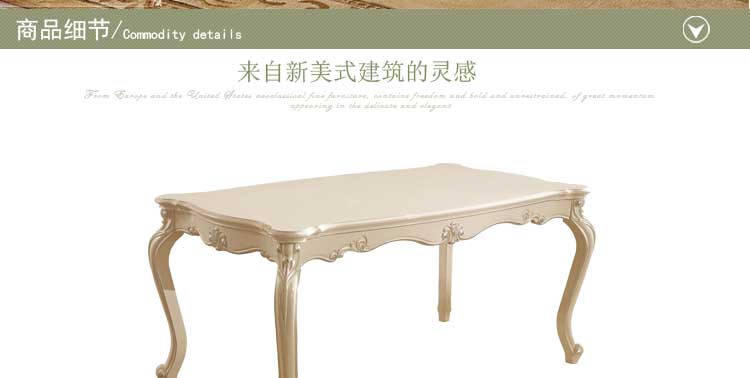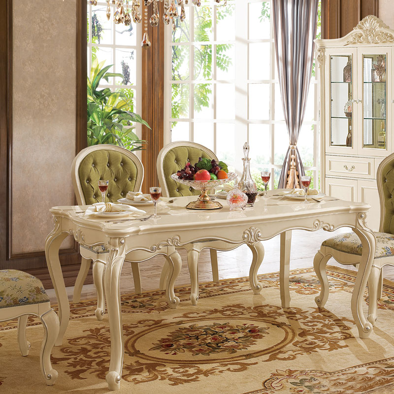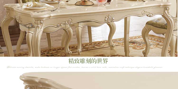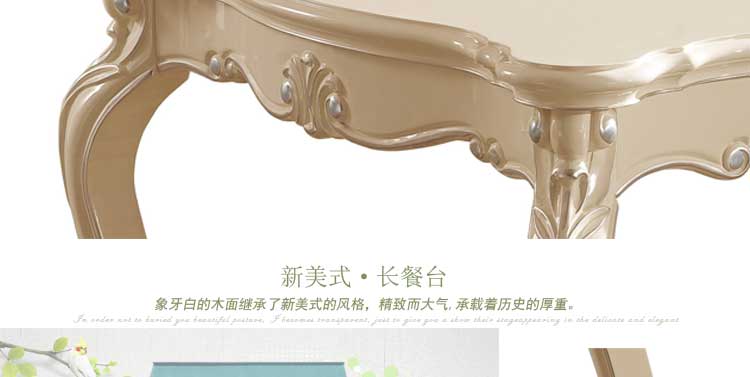 艾斯家美式象牙白乡村木面长餐桌 美式田园餐桌椅组合全实木雕花方桌饭桌8502