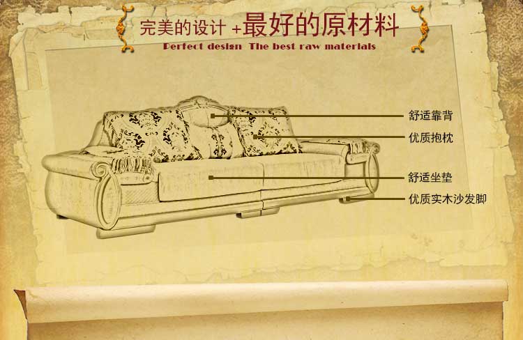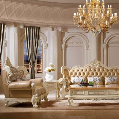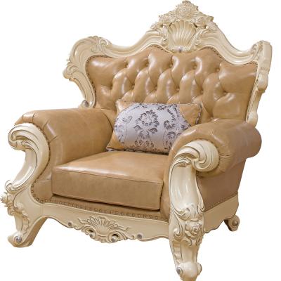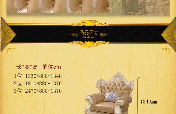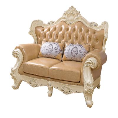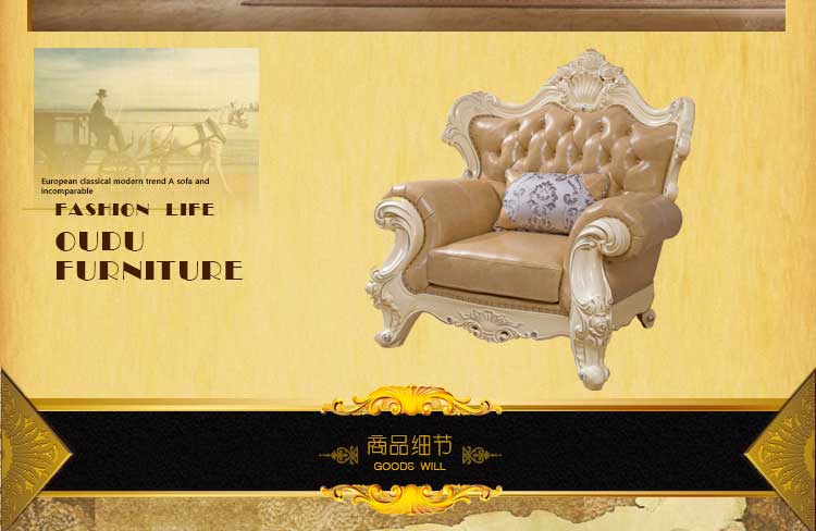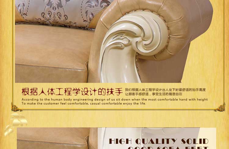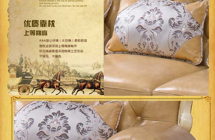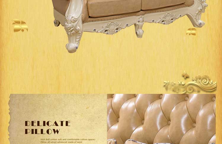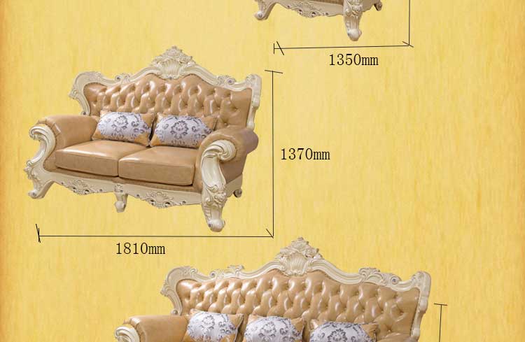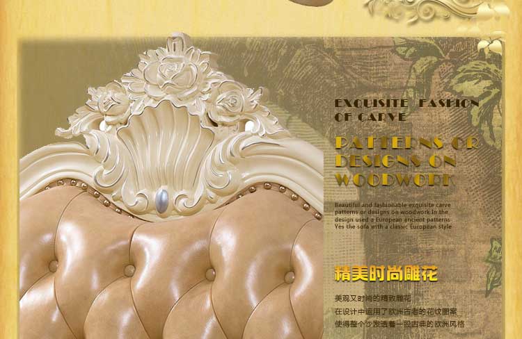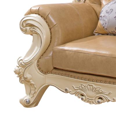 艾斯家 象牙白实木雕花1+2+3真皮沙发组合 客厅美式家具 新美式皮艺沙发8502