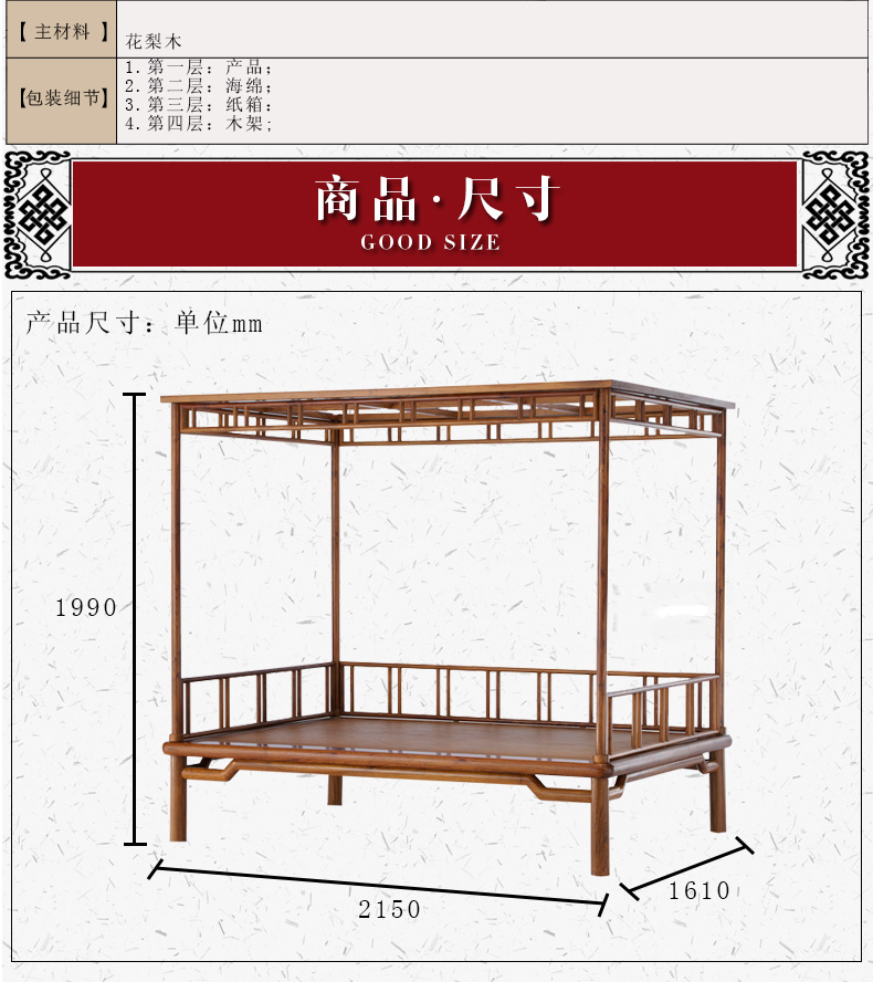 空禅中式架子床双人床拔步床实木床明清仿古实木床花梨木家具GX-082