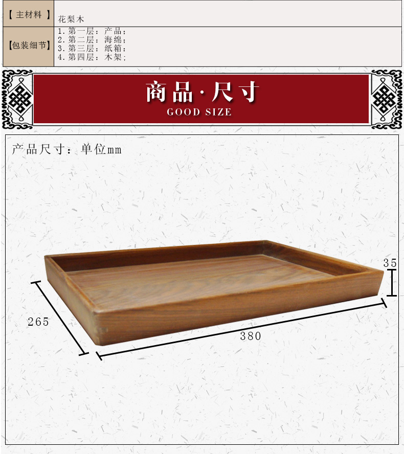 空禅中式家居木质软装配饰工艺品样板房客厅茶几厨房餐桌托盘摆件GX-052D