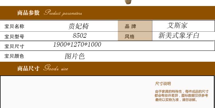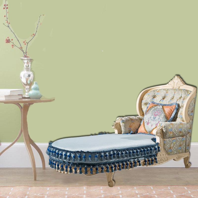 艾斯家象牙白贵妃椅实木沙发新古典贵妃躺椅懒人沙发美人榻卧室贵妃椅8502
