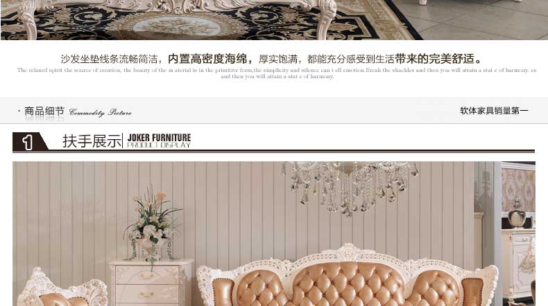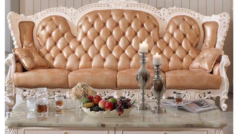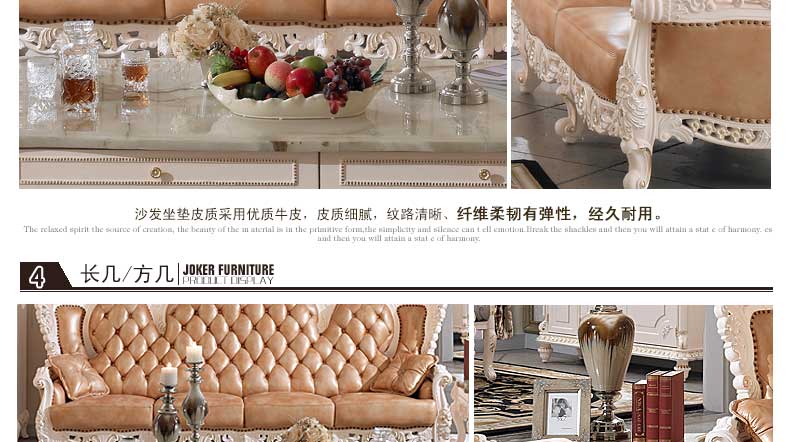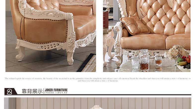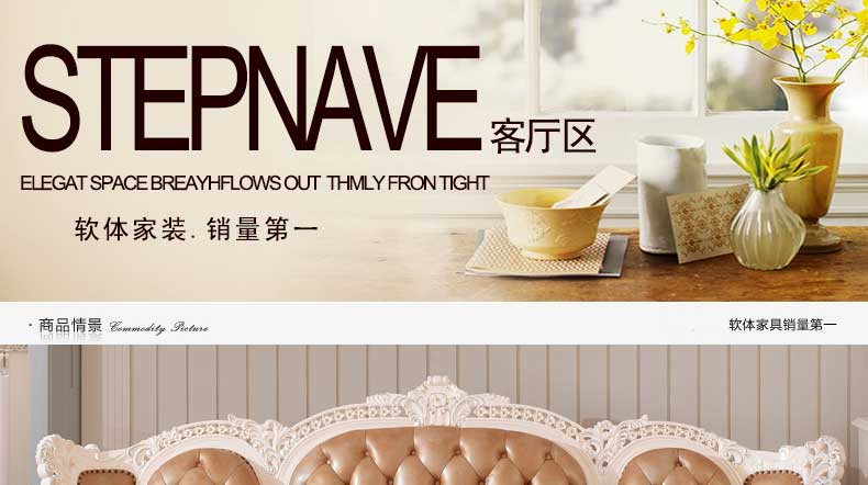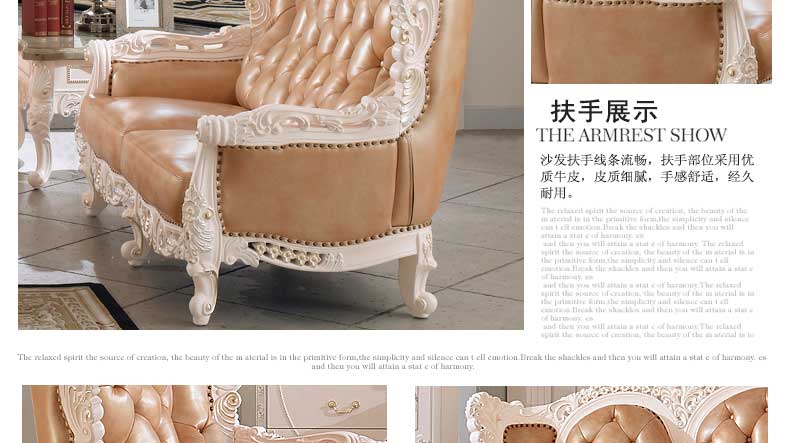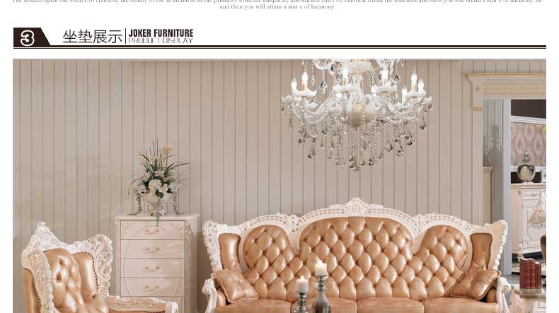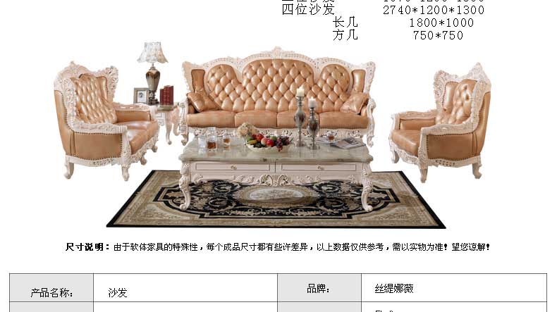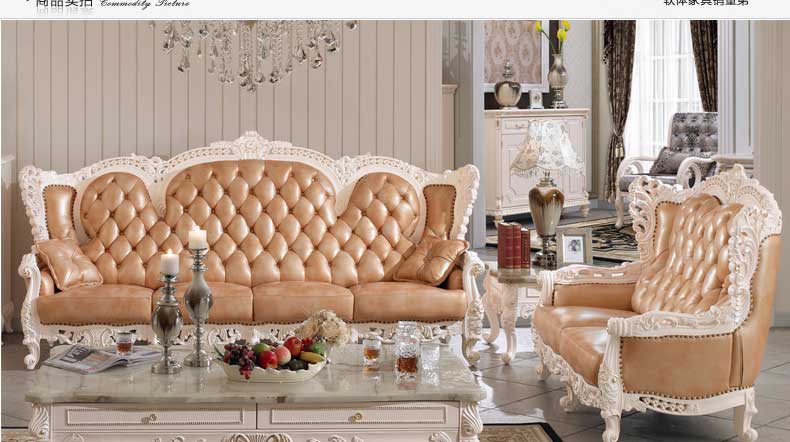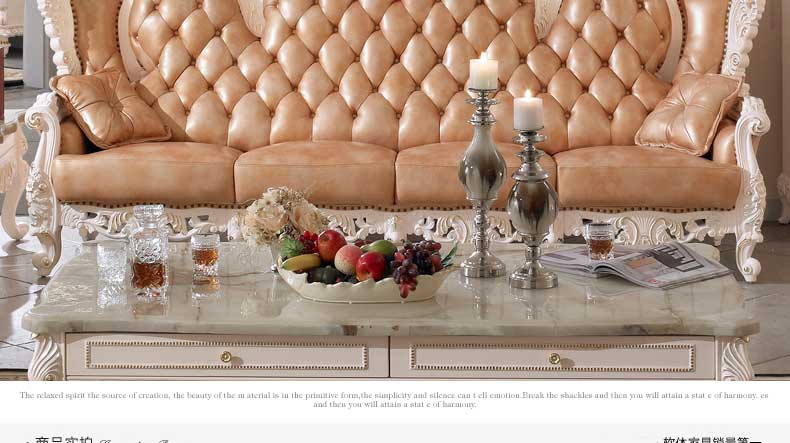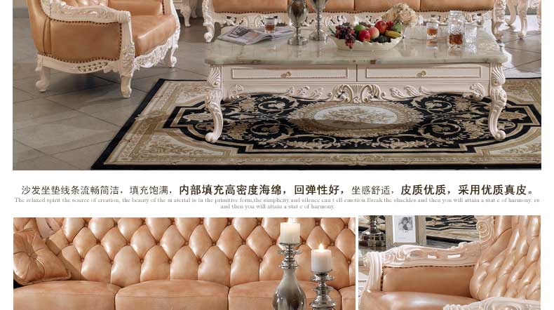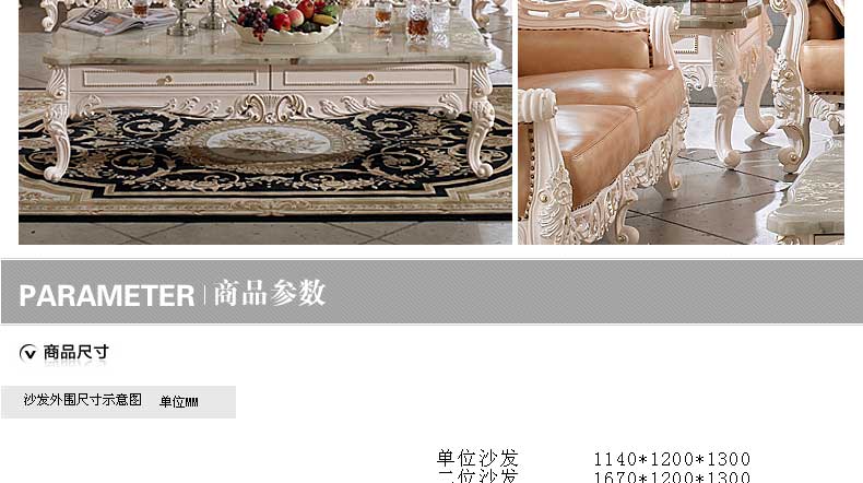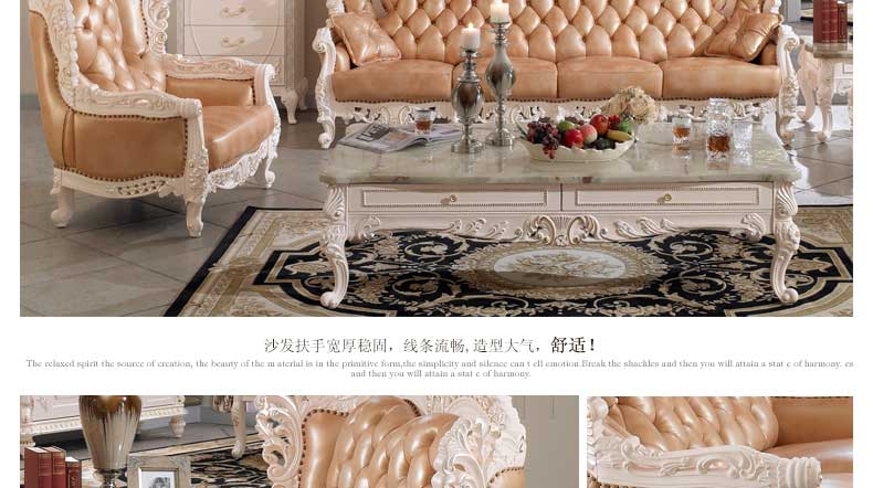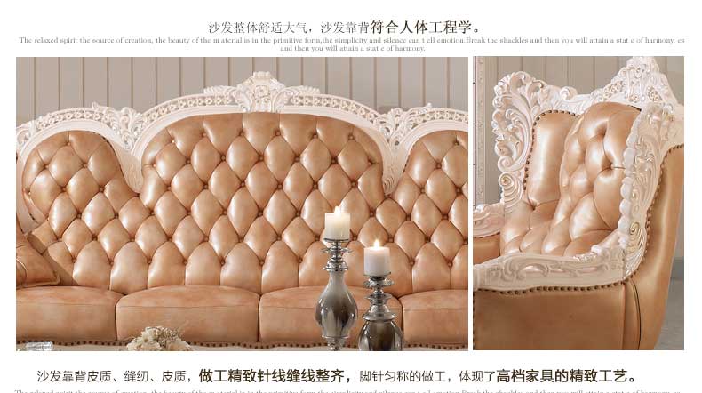 丝缇娜薇 欧式皮艺沙发组合实木雕花欧式沙发大小户型客厅沙发SN951B