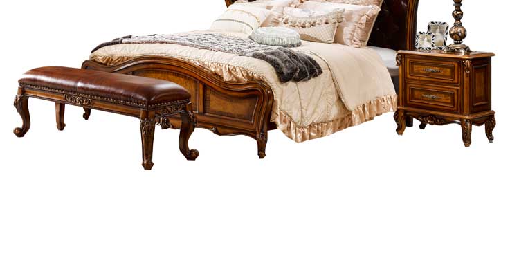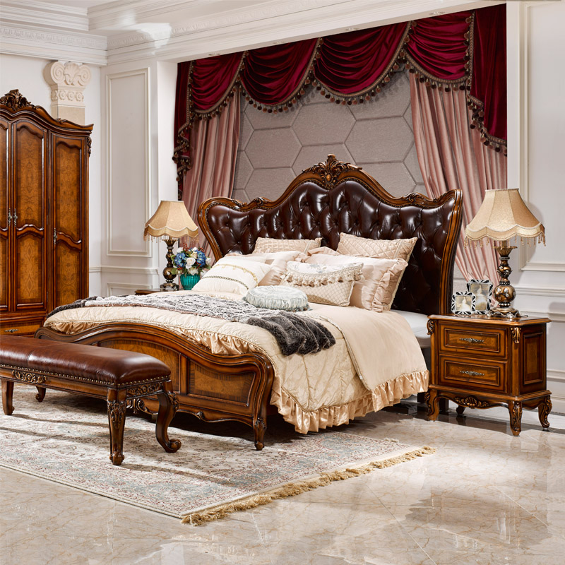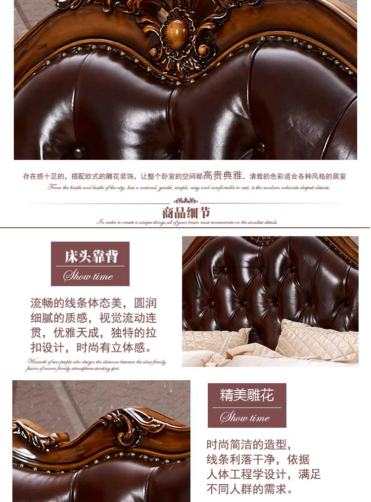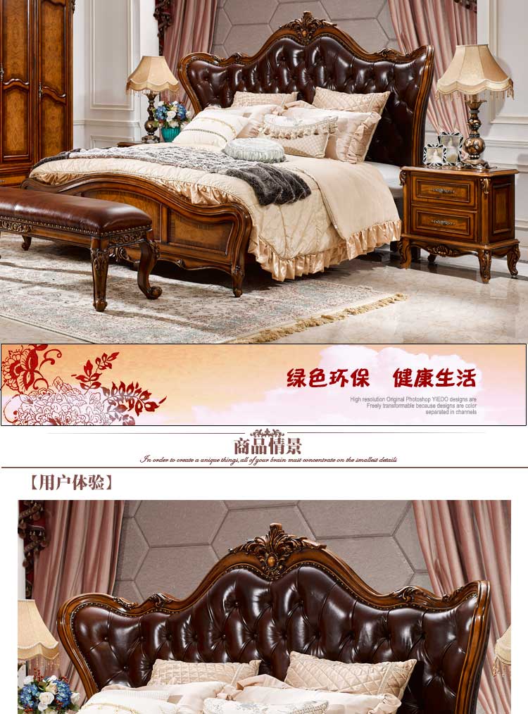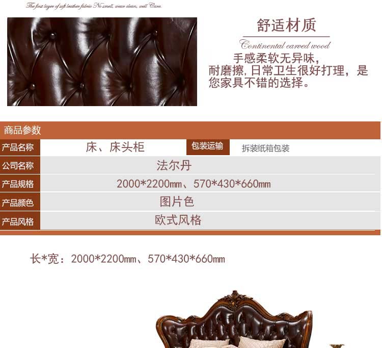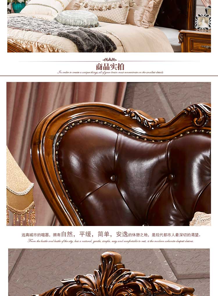 法尔丹510 欧式实木床、床头柜皮艺床卧室家具法式双人床真皮床实木雕花1.8m床