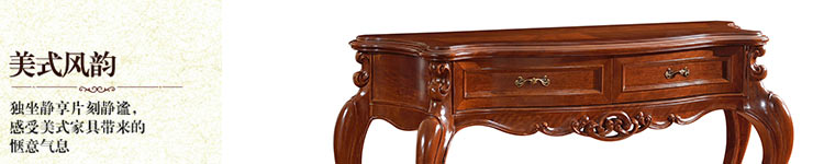 摩卡风情 美式实木玄关桌沙发背几 雕花边桌柜背几玄关柜装饰桌客厅家具