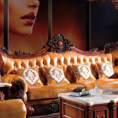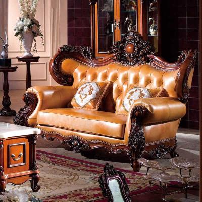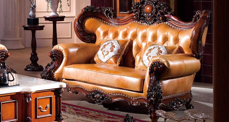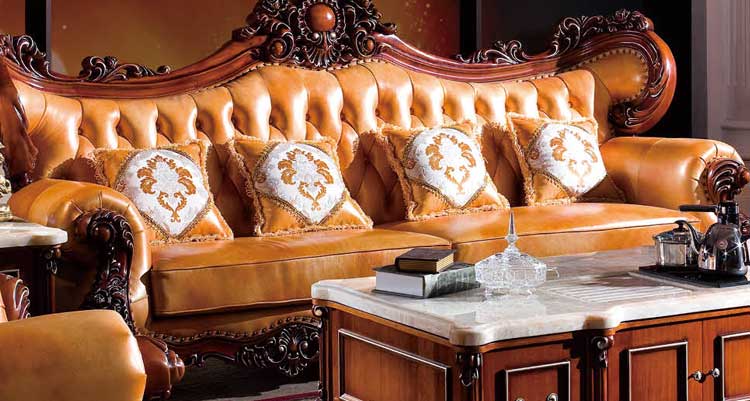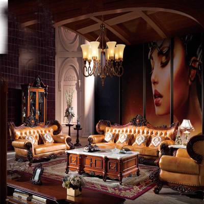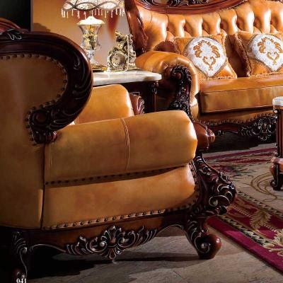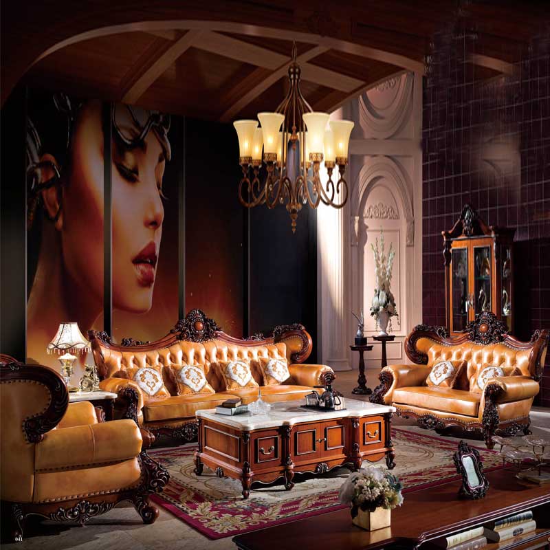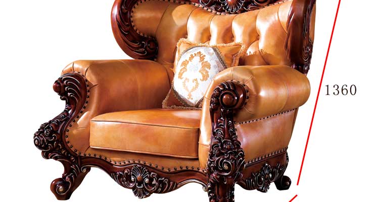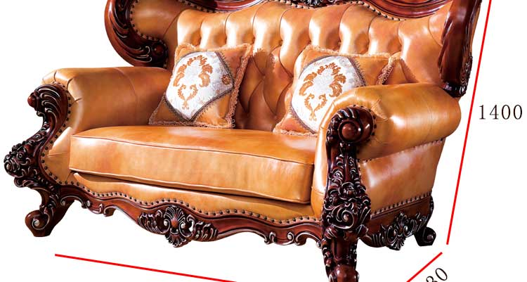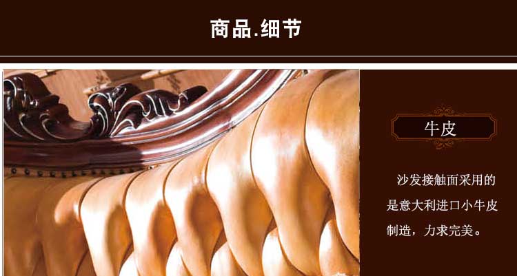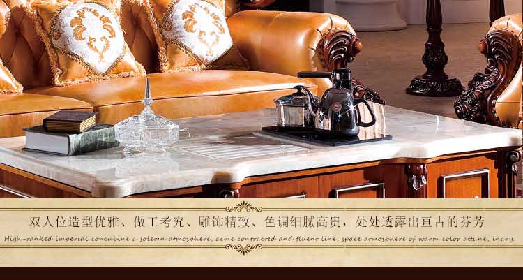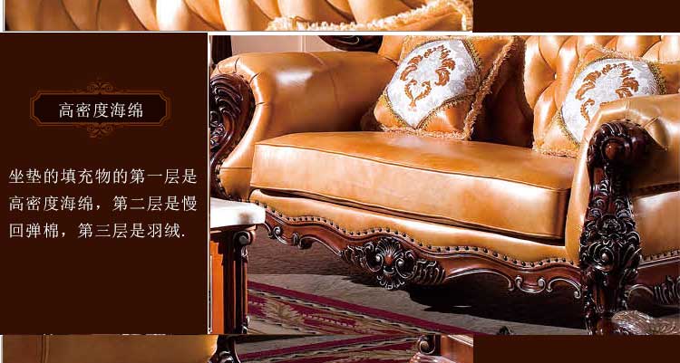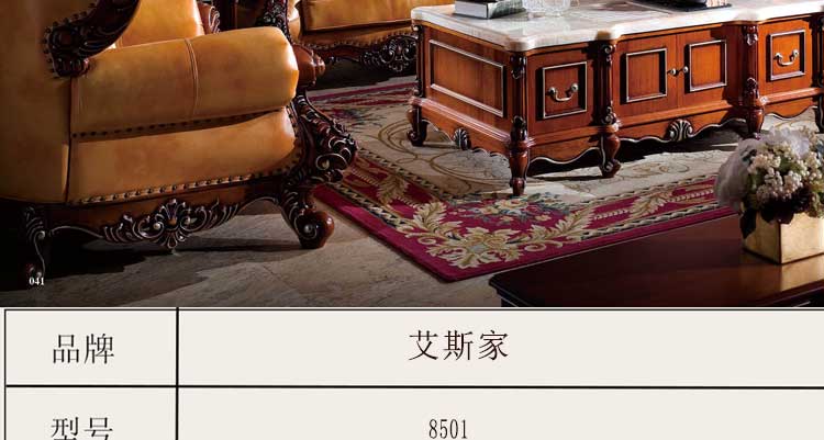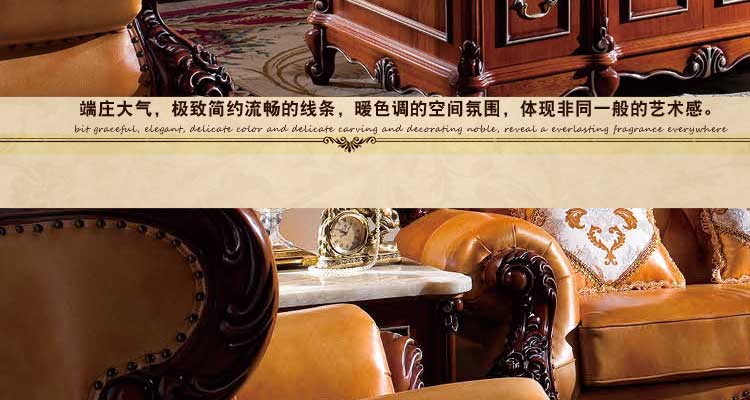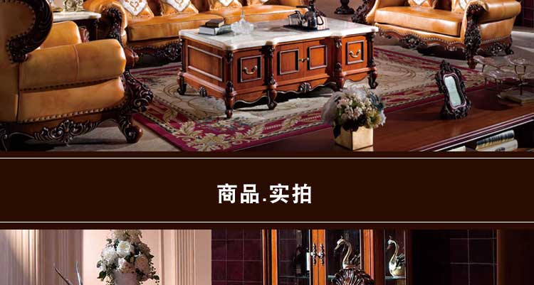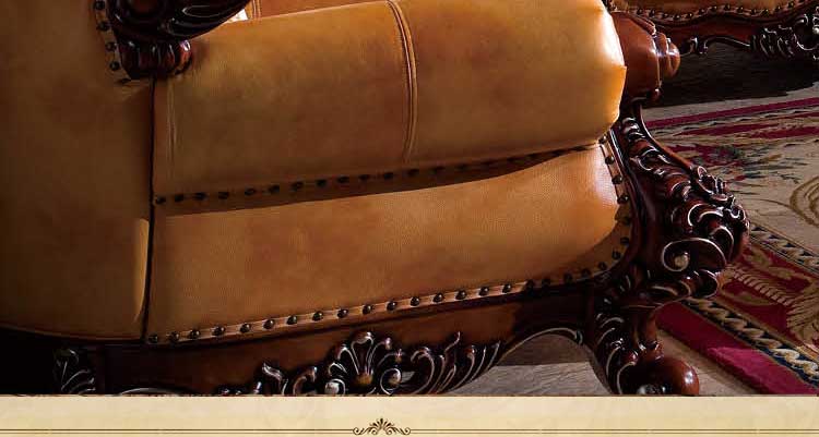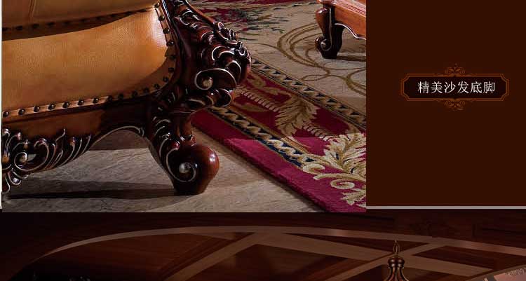 美式玫瑰金实木雕花1+2+3真皮沙发组合 客厅美式家具 新美式皮艺沙发8501