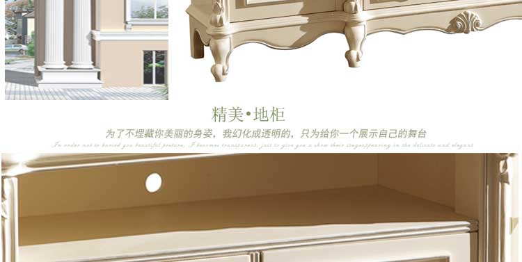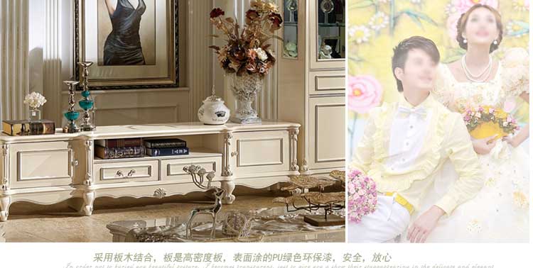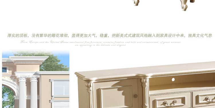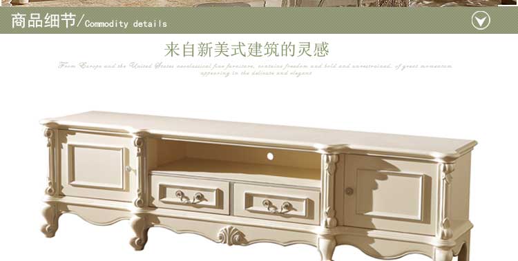 艾斯家象牙白家具地柜茶几电视柜组合地柜美式乡村客厅成套家具8501A