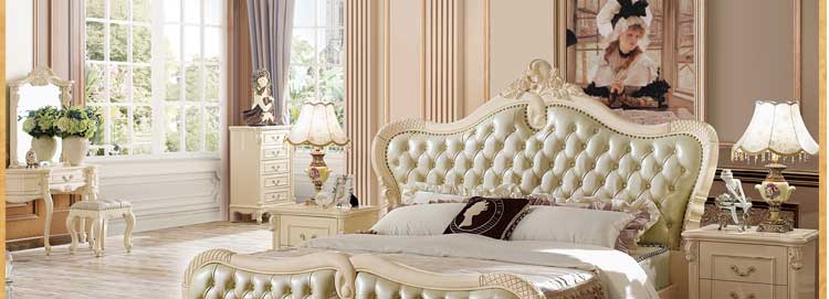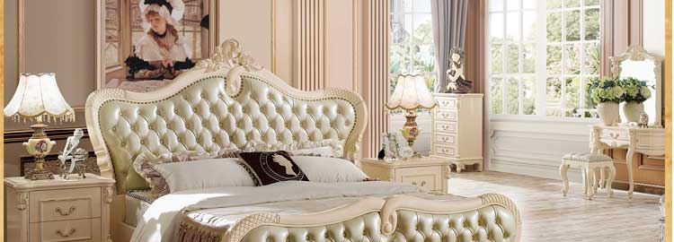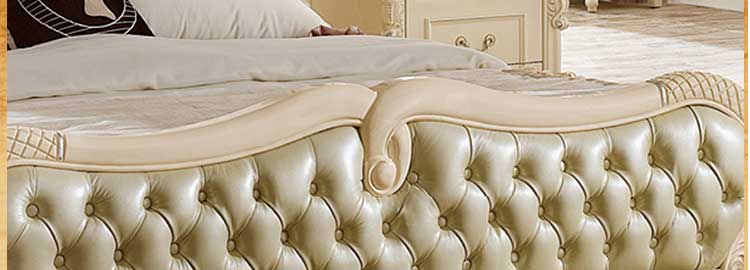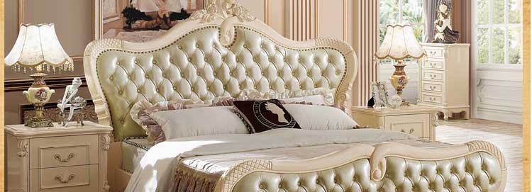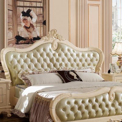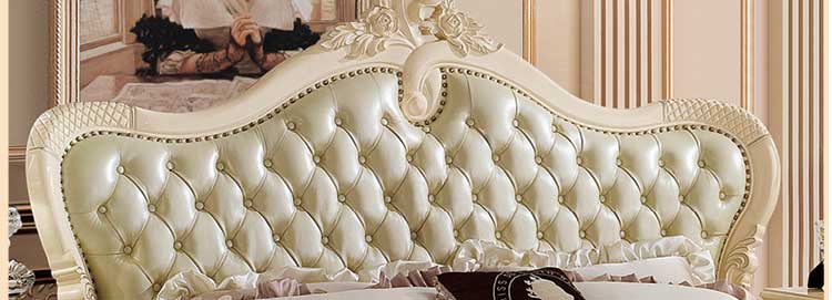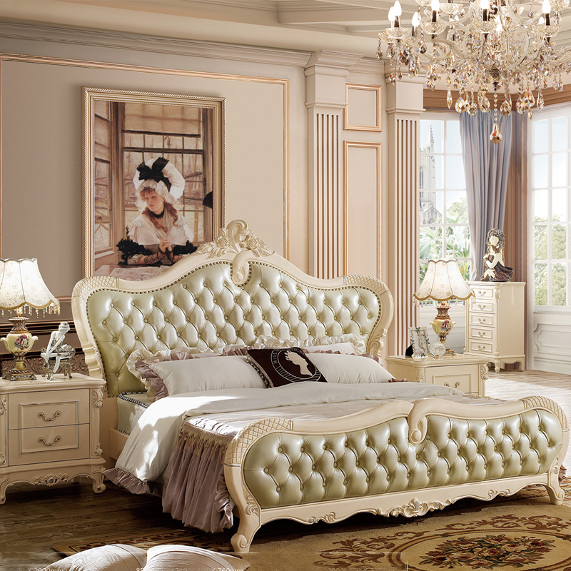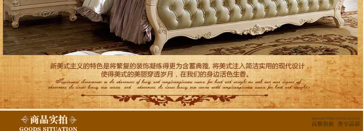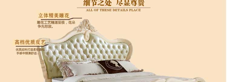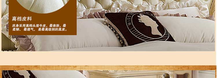 艾斯家象牙白实木床美式家具高箱真皮美式床双人床卧室婚床8501
