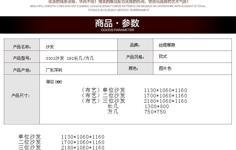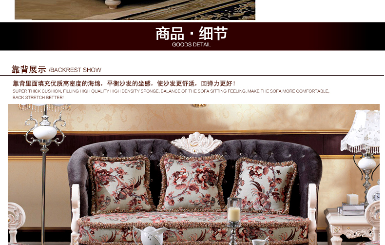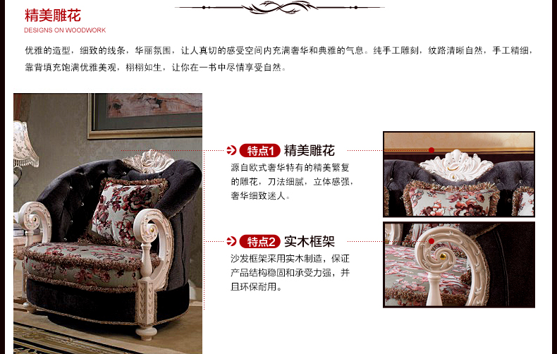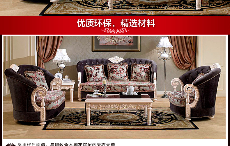 丝缇娜薇 欧式布艺实木沙发新款沙发客厅组合沙发 3301