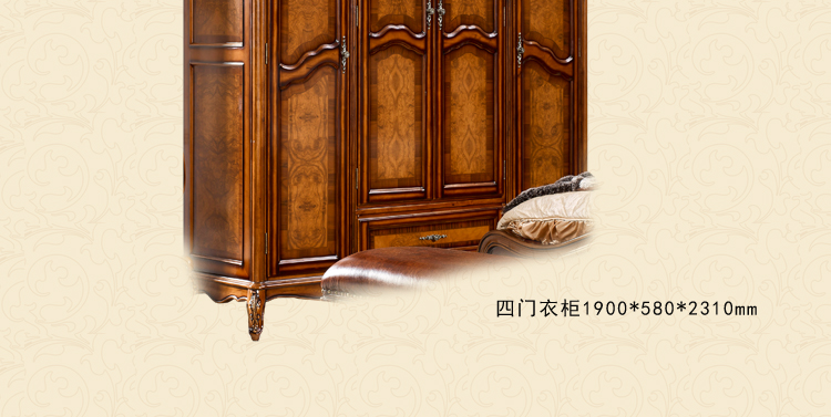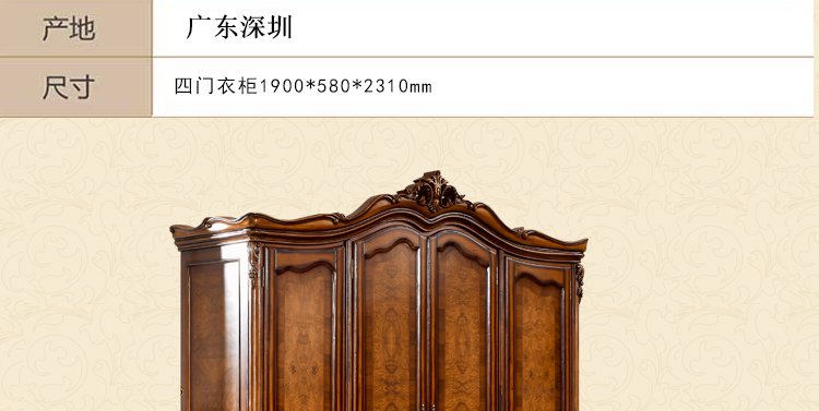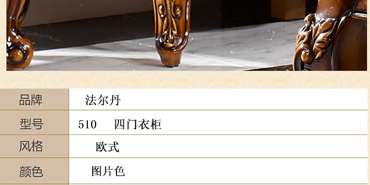 法尔丹510四门衣柜 欧式古典衣柜实木衣柜欧式储存柜 欧式古典四门衣柜 整体卧室衣橱