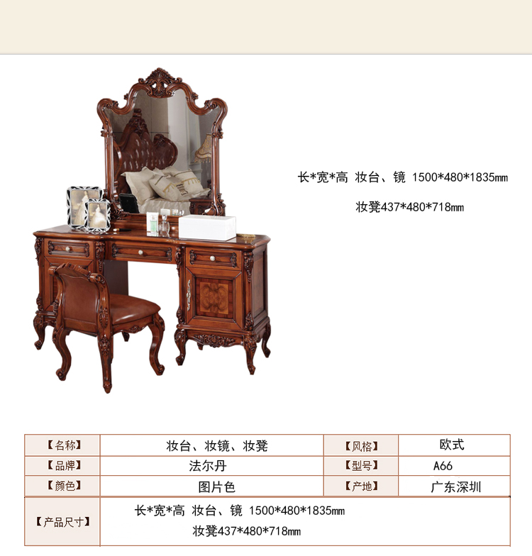 法尔丹A66妆台/镜妆凳 欧式妆台实木卧室欧式梳妆台镜妆凳子妆镜桌子特价
