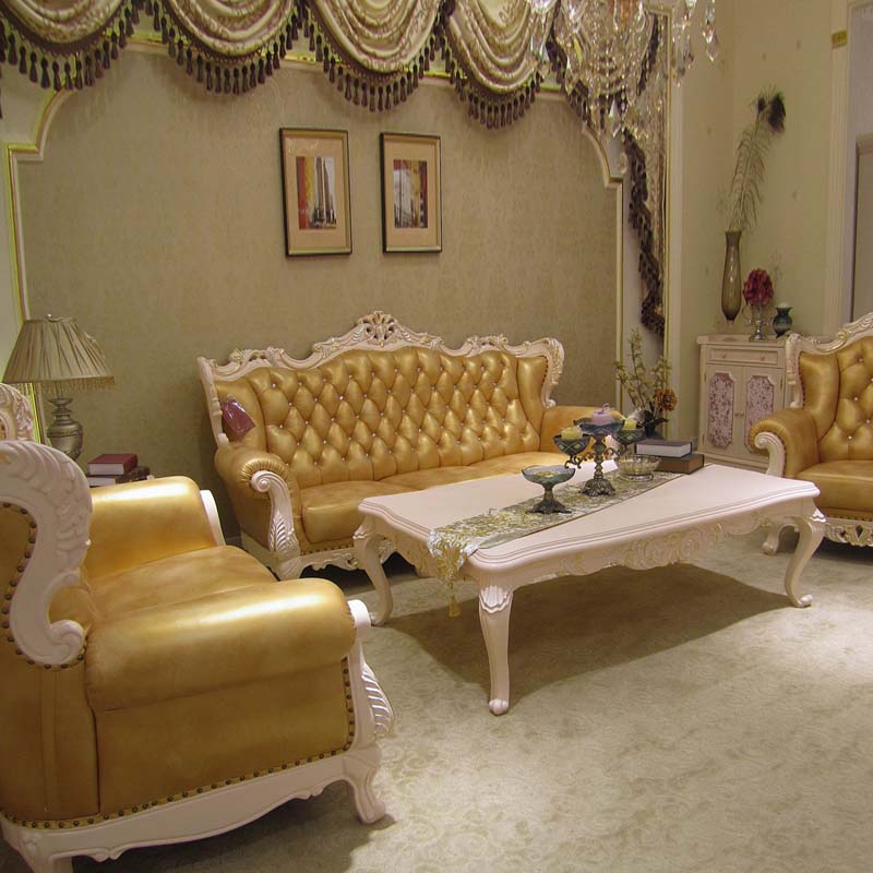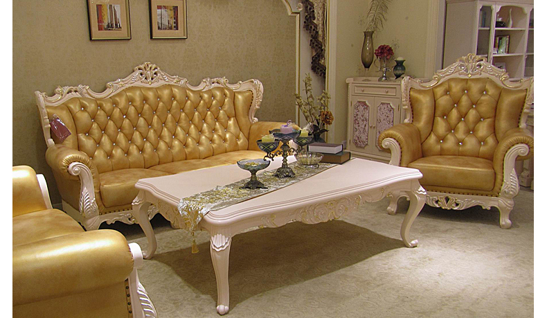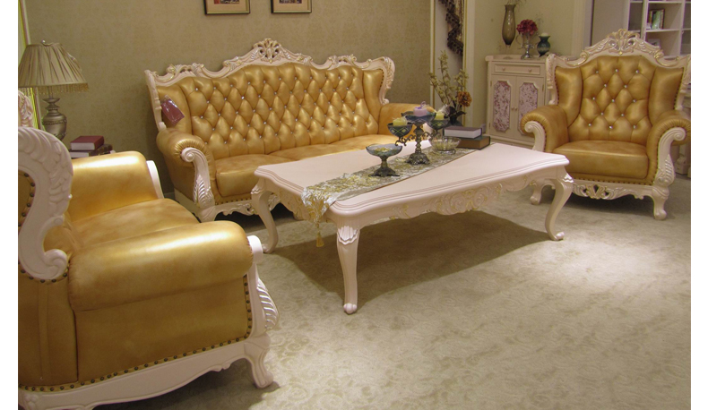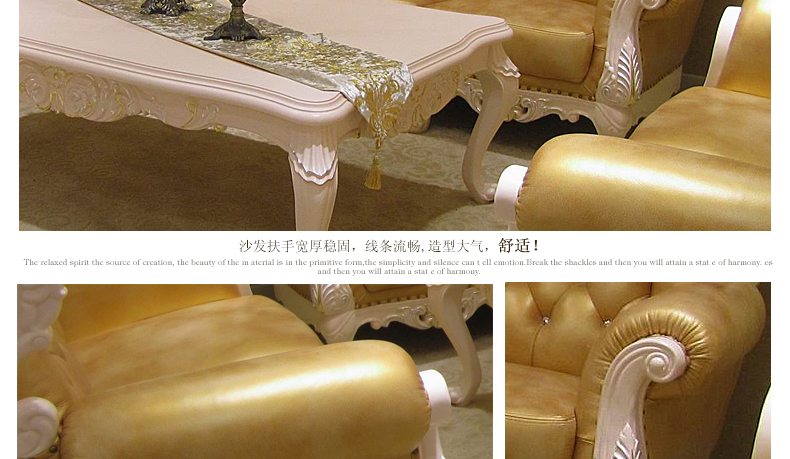 丝缇娜薇 欧式皮艺沙发组合欧式实木雕花大小户型客厅新款沙发985