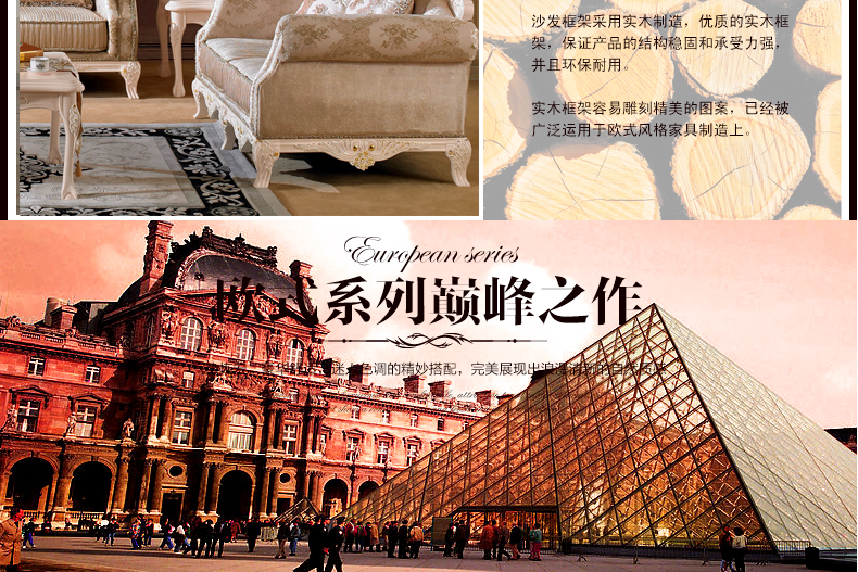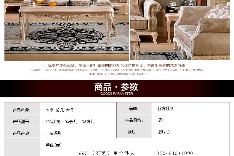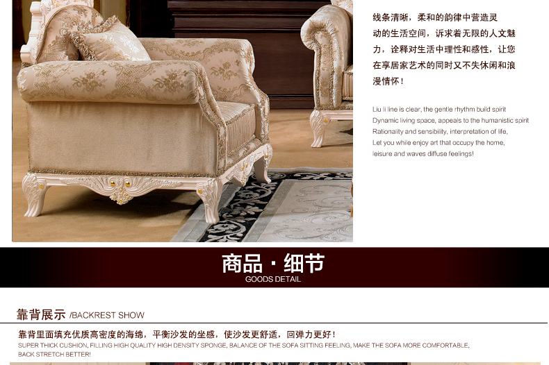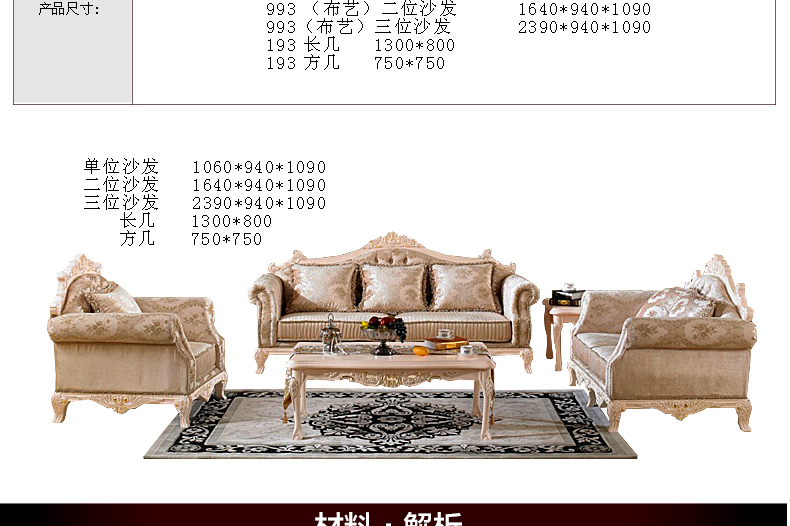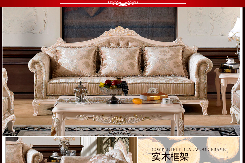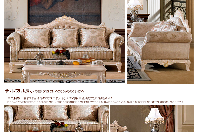 丝缇娜薇 大小户型客厅橡木欧式布艺沙发单人位双人位三人位组合993