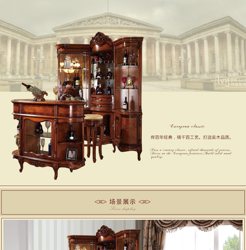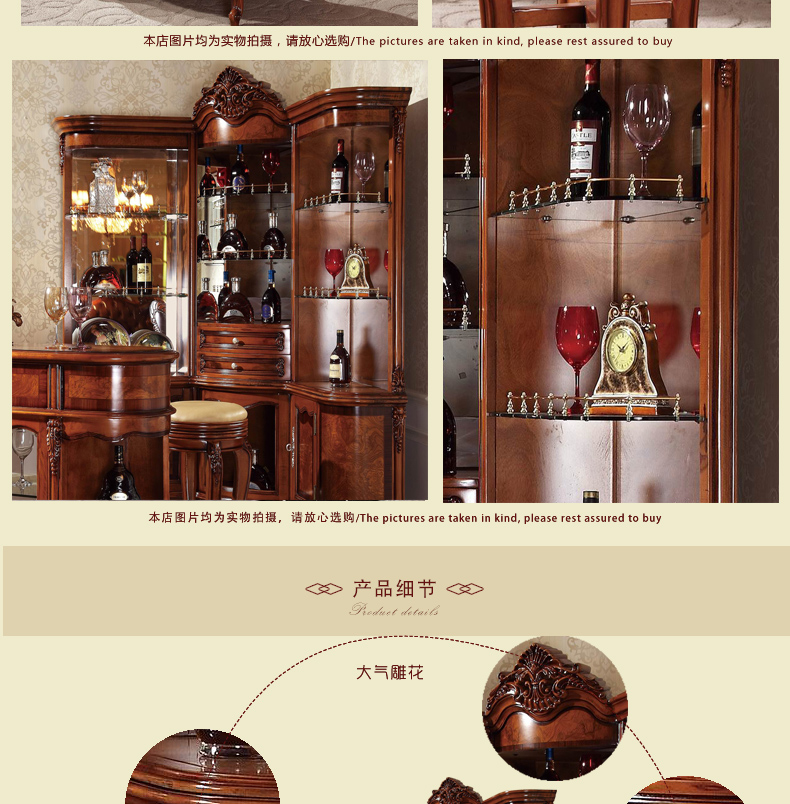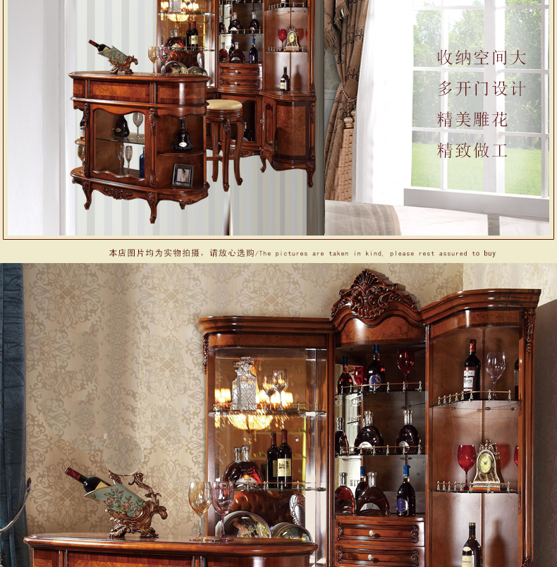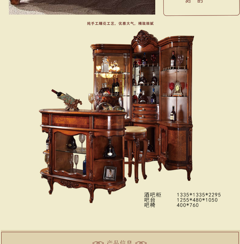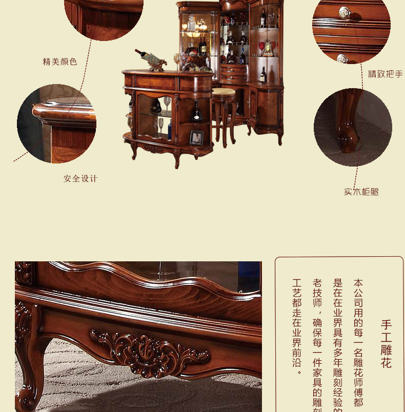法尔丹A66酒吧柜 吧台 吧椅 欧式实木酒柜 法式实木雕刻酒柜 古典酒吧柜