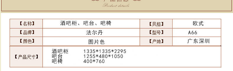 酒吧柜 1335*1335*2295 吧台 1255*480*1050 吧椅 400*760
