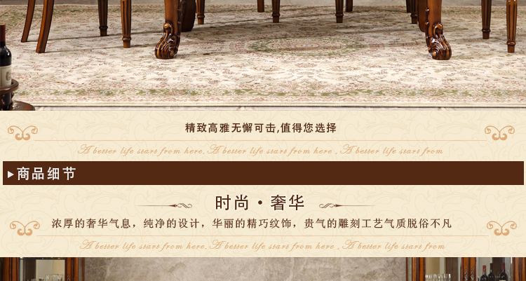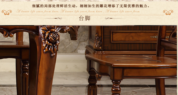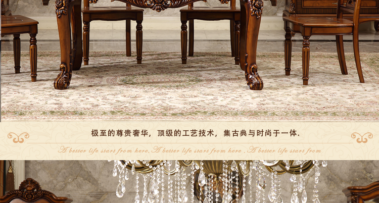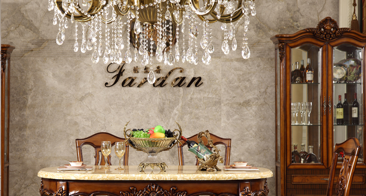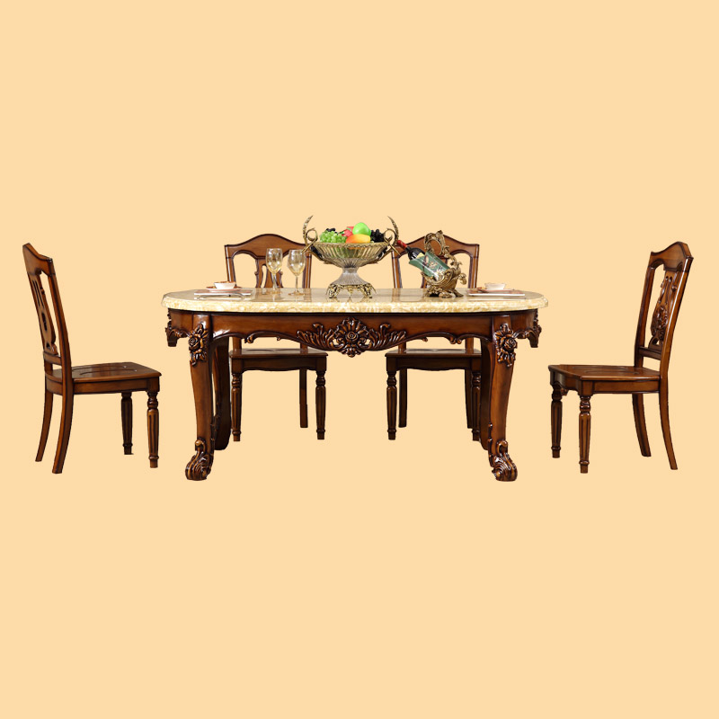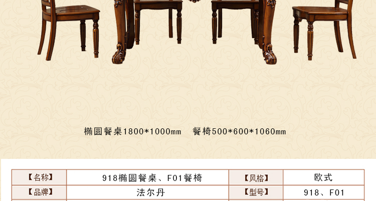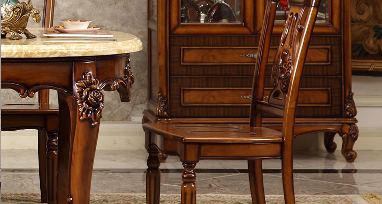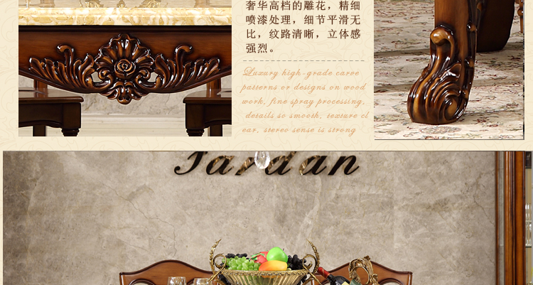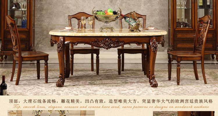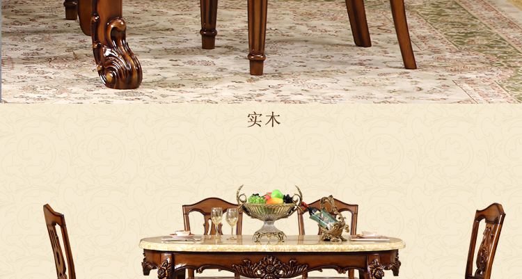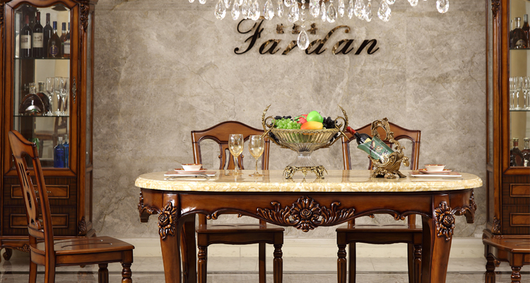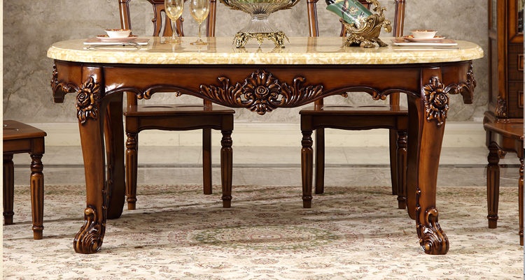 法尔丹椭圆形咖色欧式大理石餐桌椅组合小户型法式实木雕花餐桌918椭圆餐桌F01餐椅