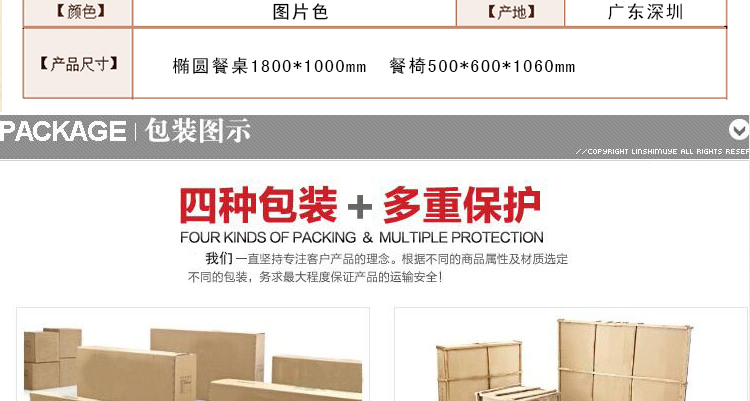 外围尺寸为椭圆餐桌1800*1000mm 餐椅500*600*1060mm