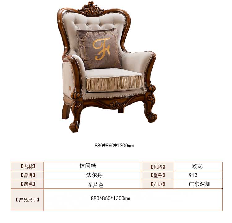 法尔丹 912休闲椅欧式布艺 休闲椅 客厅 别墅大户型 古典休闲椅 欧式实木 奢华