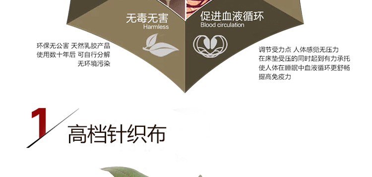 维纳斯床垫 天然乳胶床垫 高猛碳钢大芯弹簧 进口乳胶 高档针织布 斯里兰卡