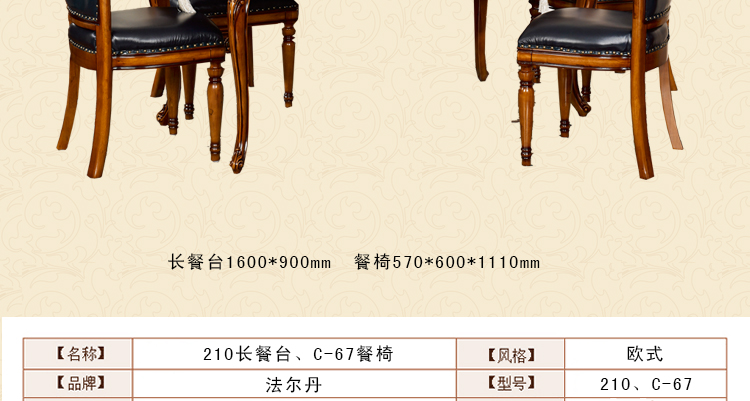 法尔丹简约欧式餐桌椅长方形欧式餐台实木小户型组合210长餐台C-67餐椅