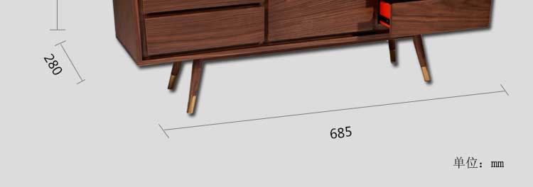 外围尺寸:1610*420*830mm(胡桃木木皮, 胡桃木实木脚)