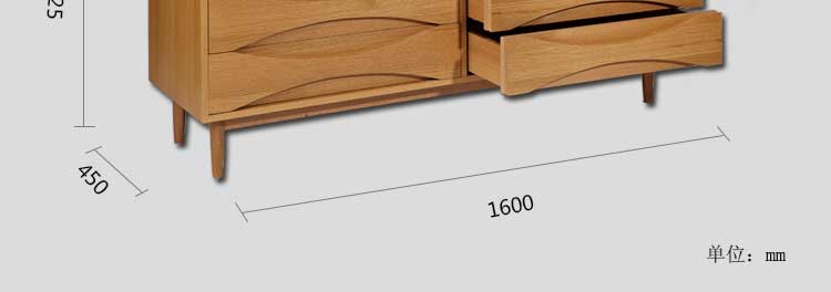 外围尺寸:1600*450*725mm(胡桃木木皮, 胡桃木实木脚)