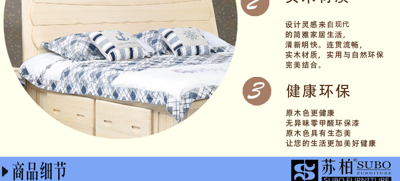 苏柏家具 成人床 1.8米舒心床 低箱床 高箱床 松木浅色床 3#舒心低箱床1800